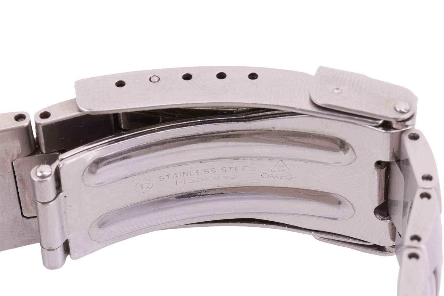 An Omega Seamaster professional 200m diving watch in steel. Model: 396.1052 Serial: 53011249 Year: 1991 Case Material: Steel Case diameter: 38mm Dial: Black Numerals: Baton/dots Movement: Quartz Calibre: 1438 Functions: Date, rotating bezel Strap: Steel Buckle: Folding Box: No Papers: No The watch appears to be in good working order, no long-term tests have been performed and accuracy cannot be guaranteed, a full service is advised on all watches and pocket watches once purchased. Surface scratches & wear consistent with age The online condition report may not mention mechanical replacements or imperfections to the movement, case, dial, pendulum, separate base(s) or dome. Watches with water-resistant cases may have been opened to examine movements, but no warranties are given regarding their water resistance. It is also important to note that we cannot guarantee the authenticity or originality of individual components, such as wheels, hands, crowns, crystals, screws, bracelets, and wrist bands, since subsequent repairs and restoration may have changed the original components. Also, we cannot guarantee the authenticity or originality of any engraving or re-engraving on watch cases, case backs, bracelets, straps or internal movements.