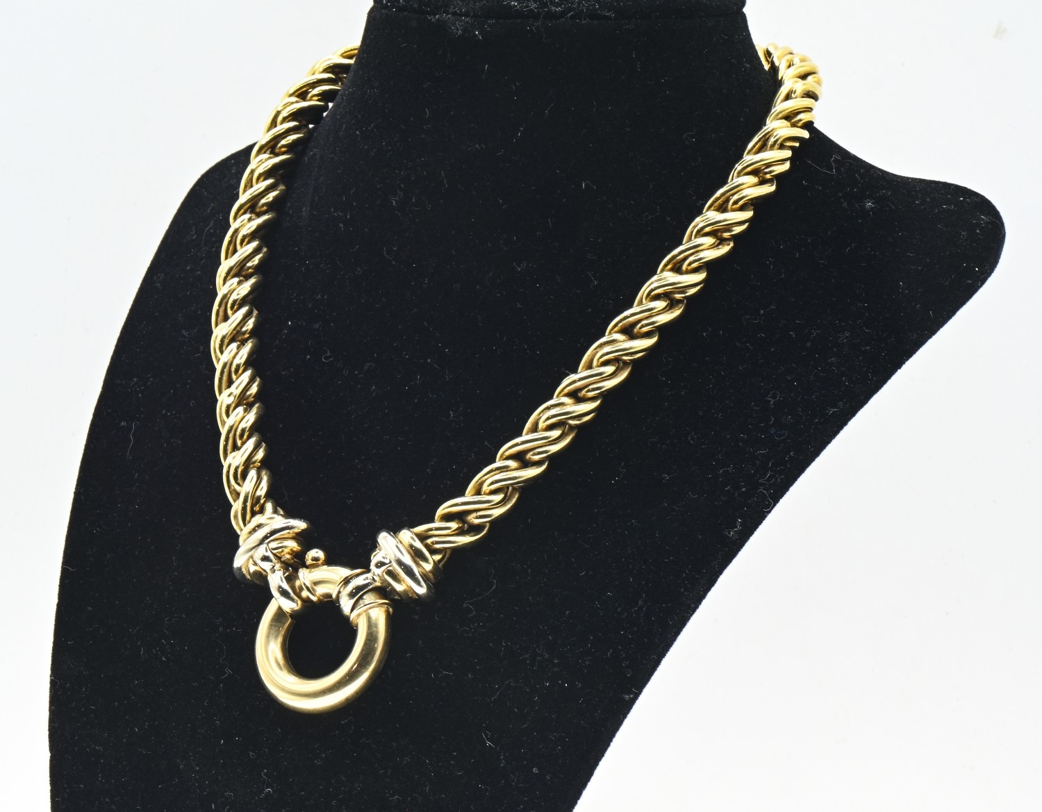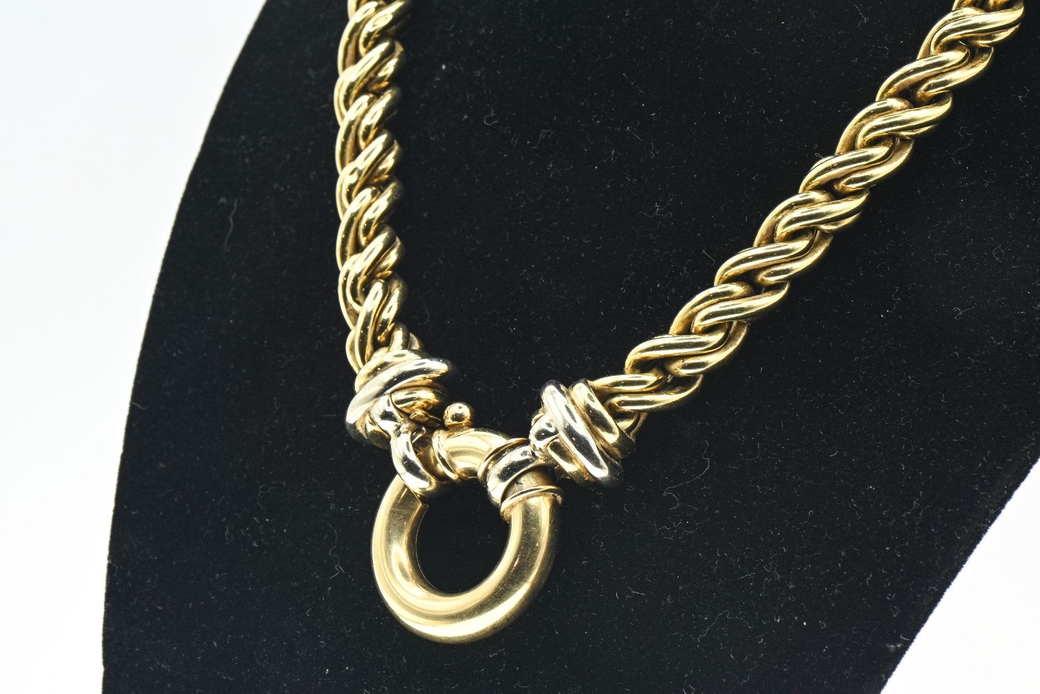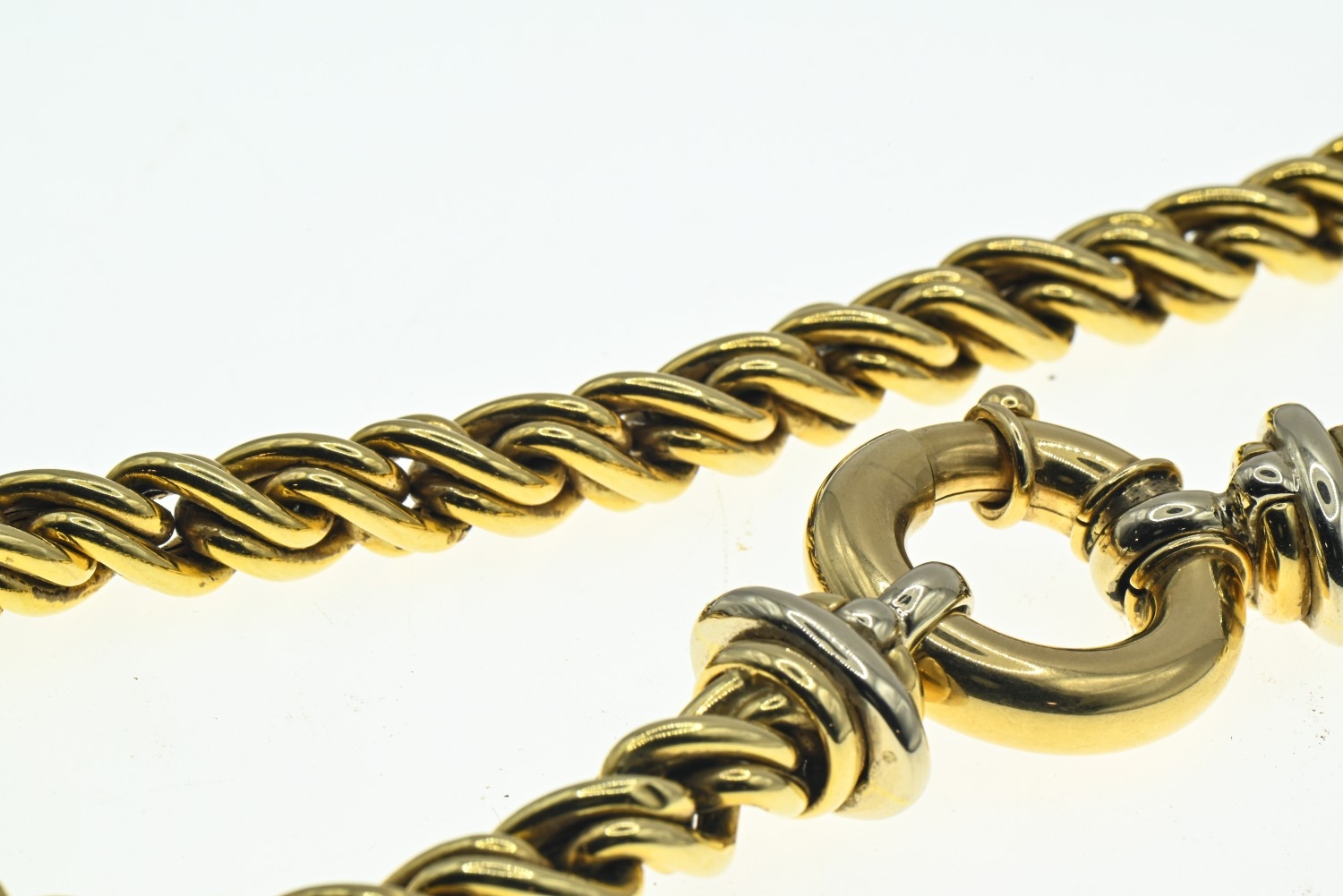 18ct gold rope twist necklace with a bolt ring clasp, import hallmark, length 420mm, 65.28 grams