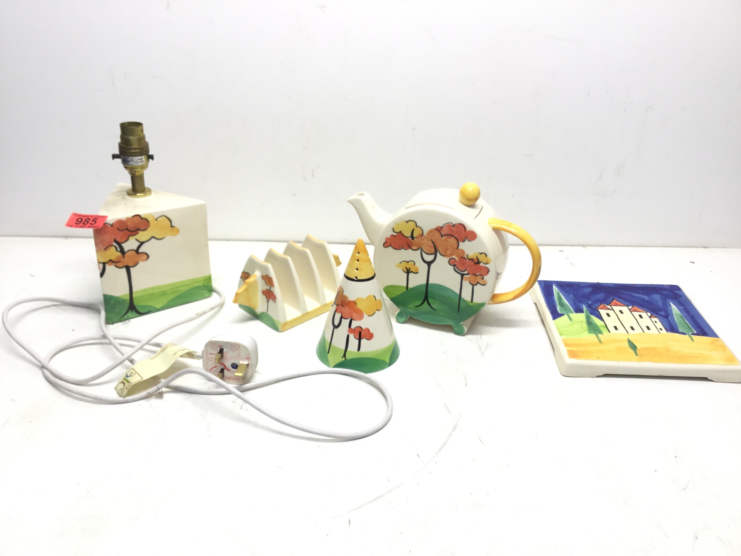 Past Times Clarice Cliff inspired items including teapot, toast rack and lamp