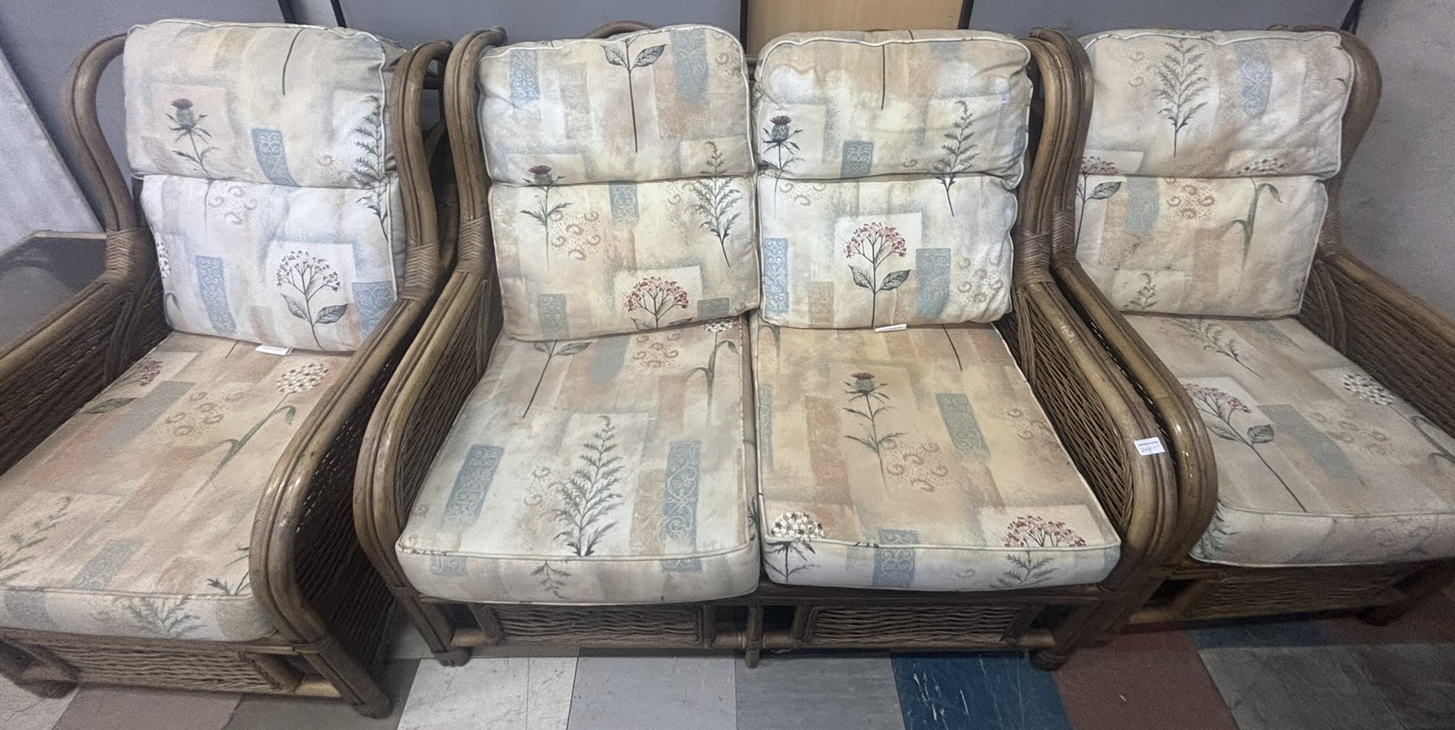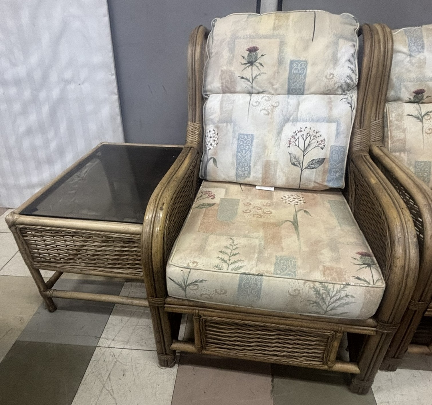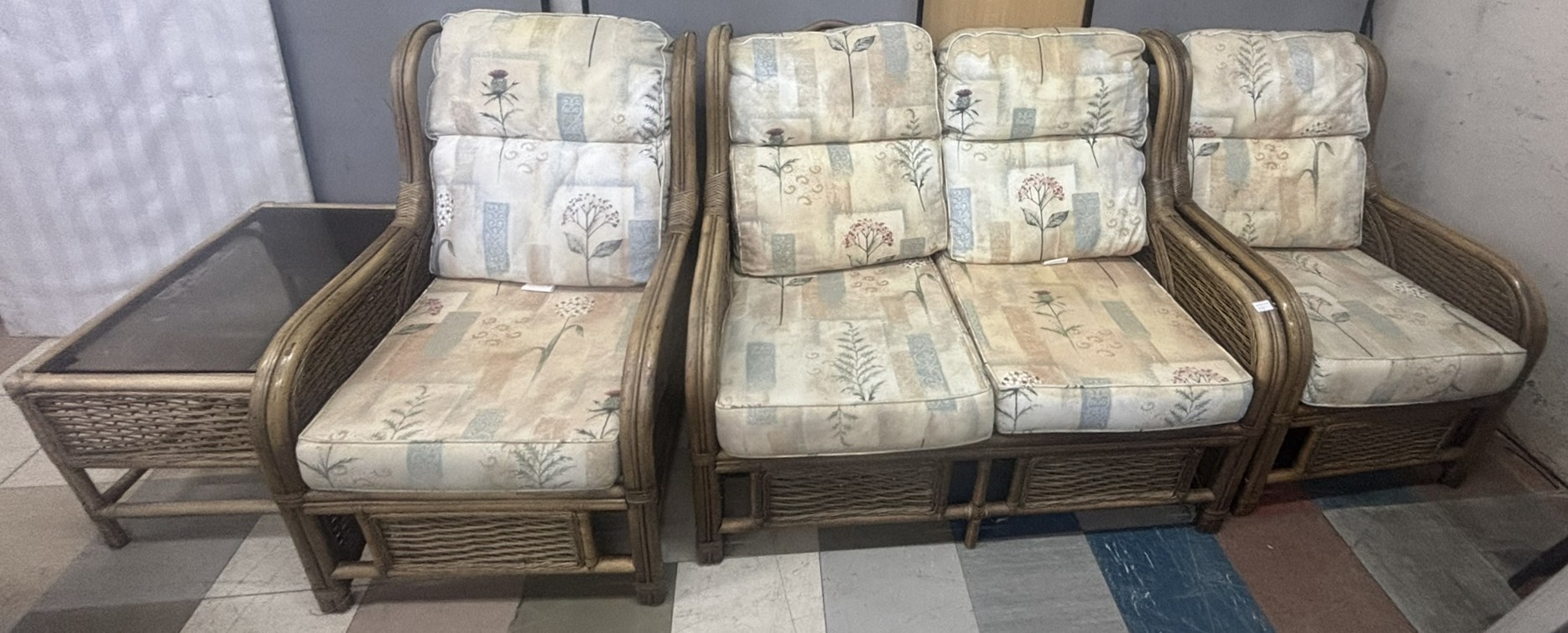 THREE PIECE CONSERVATORY SUITE PLUS MATCHING GLASS TOP COFFFEE TABLE