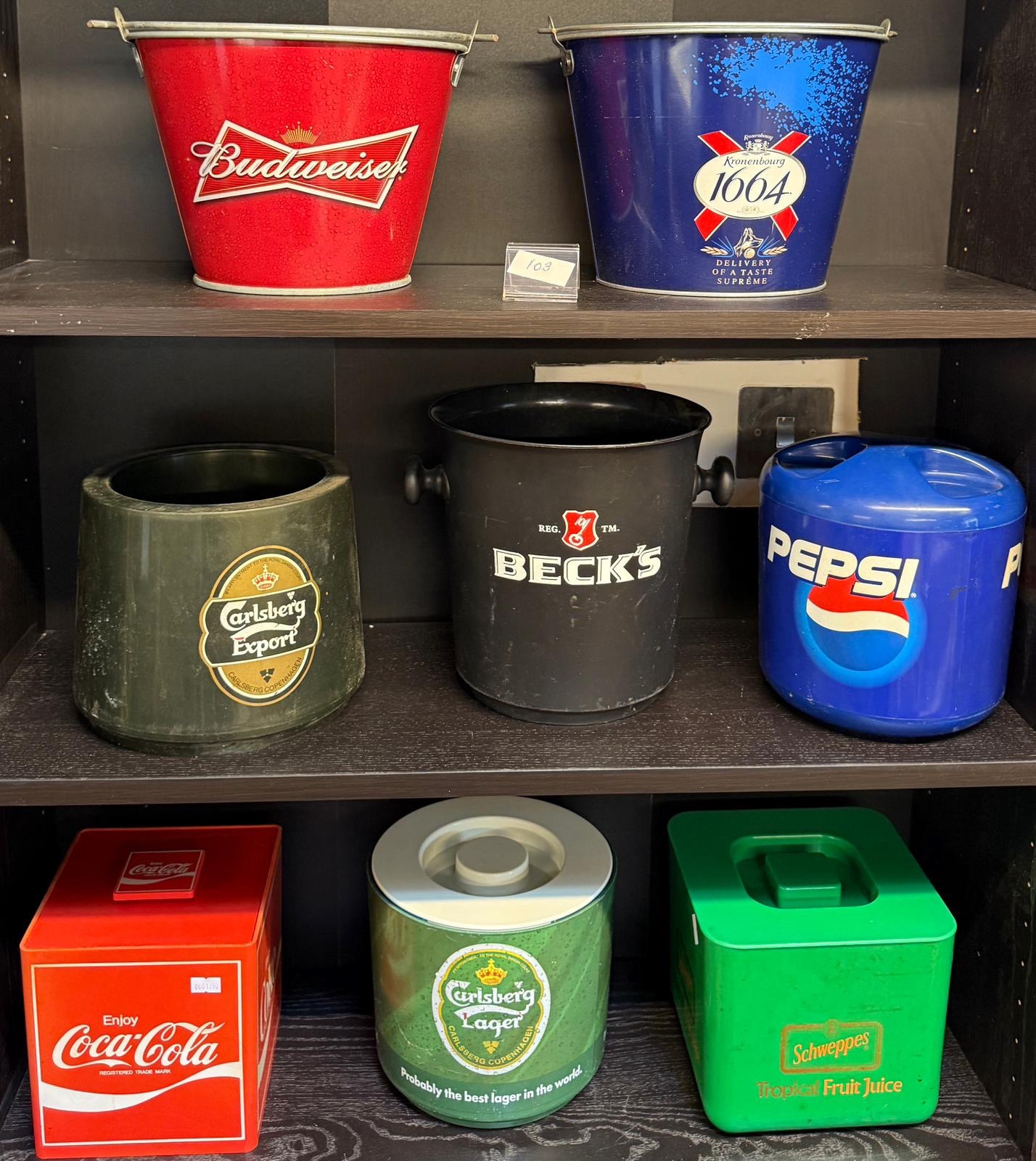 Eight ice buckets