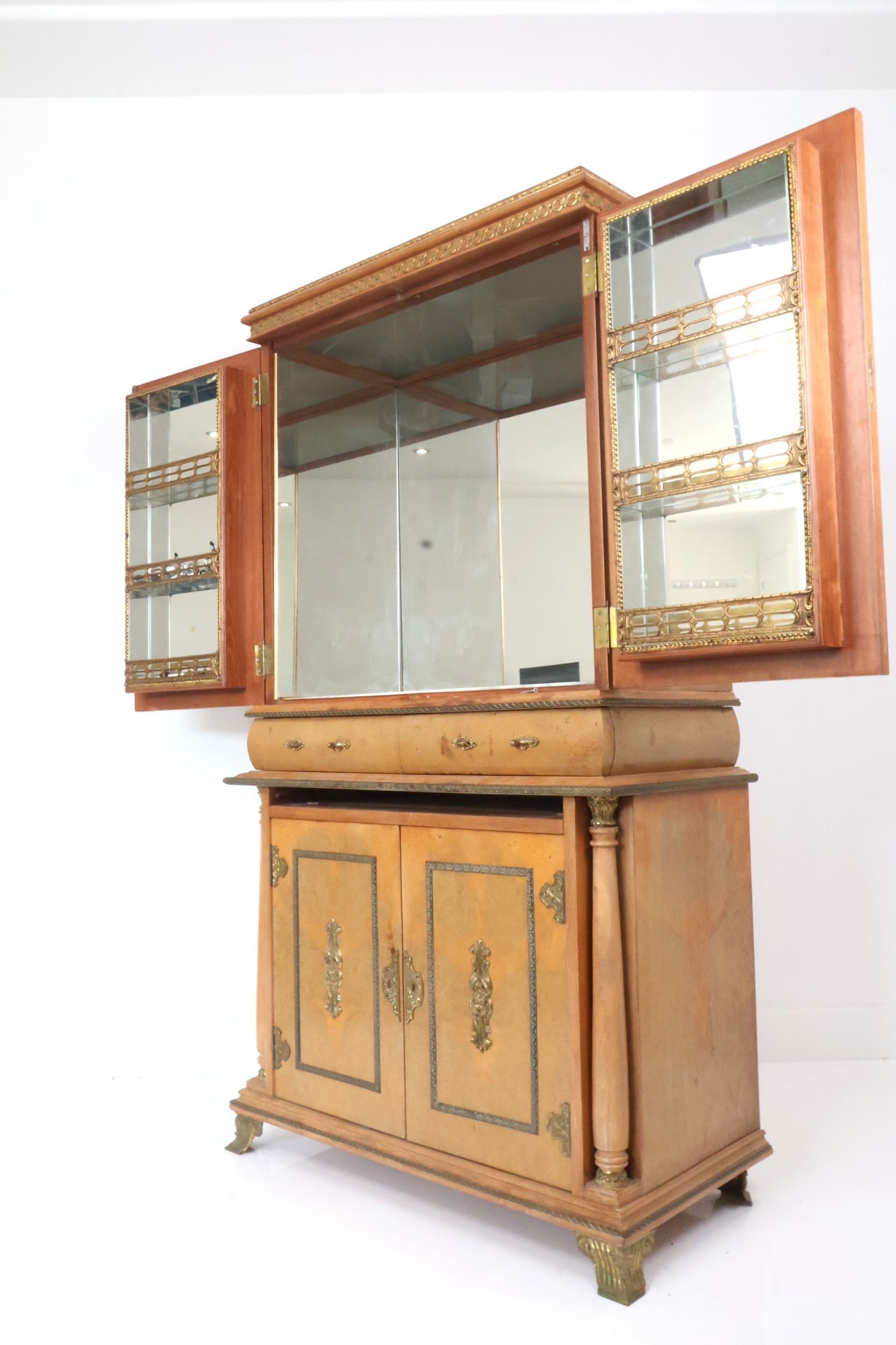 French Empire Revival Ormolu Mounted Burr Walnut Cocktail Cabinet