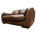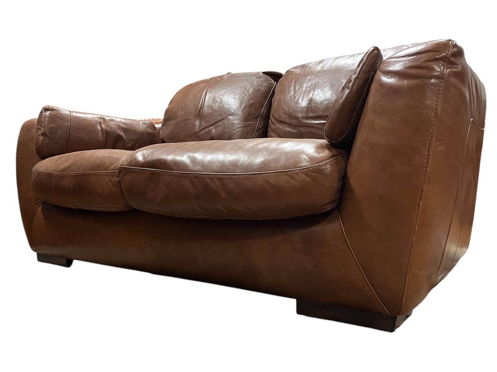 AN INCANTO ITALIAN DESIGNER HIDE UPHOLSTERED SETTEE the rectangular frame with loose cushions on block feet 177cm (w)
