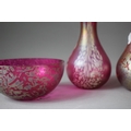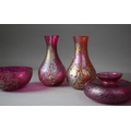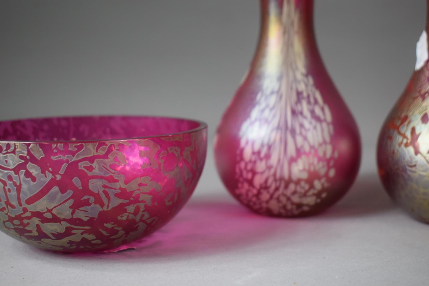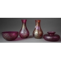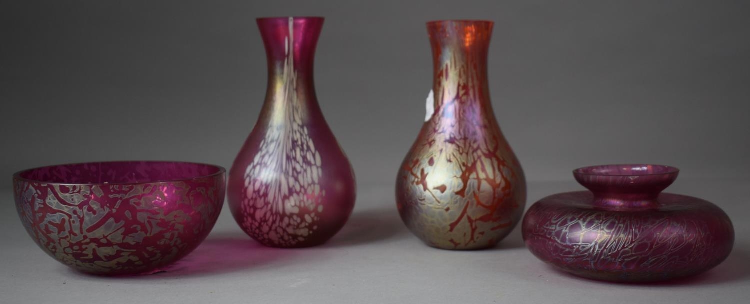 A Collection of Four Pieces of Royal Brierley Iridescent and Mottled Glassware to include Bowl, Squat Vase, Two Tapered Examples, Tallest 18cms High