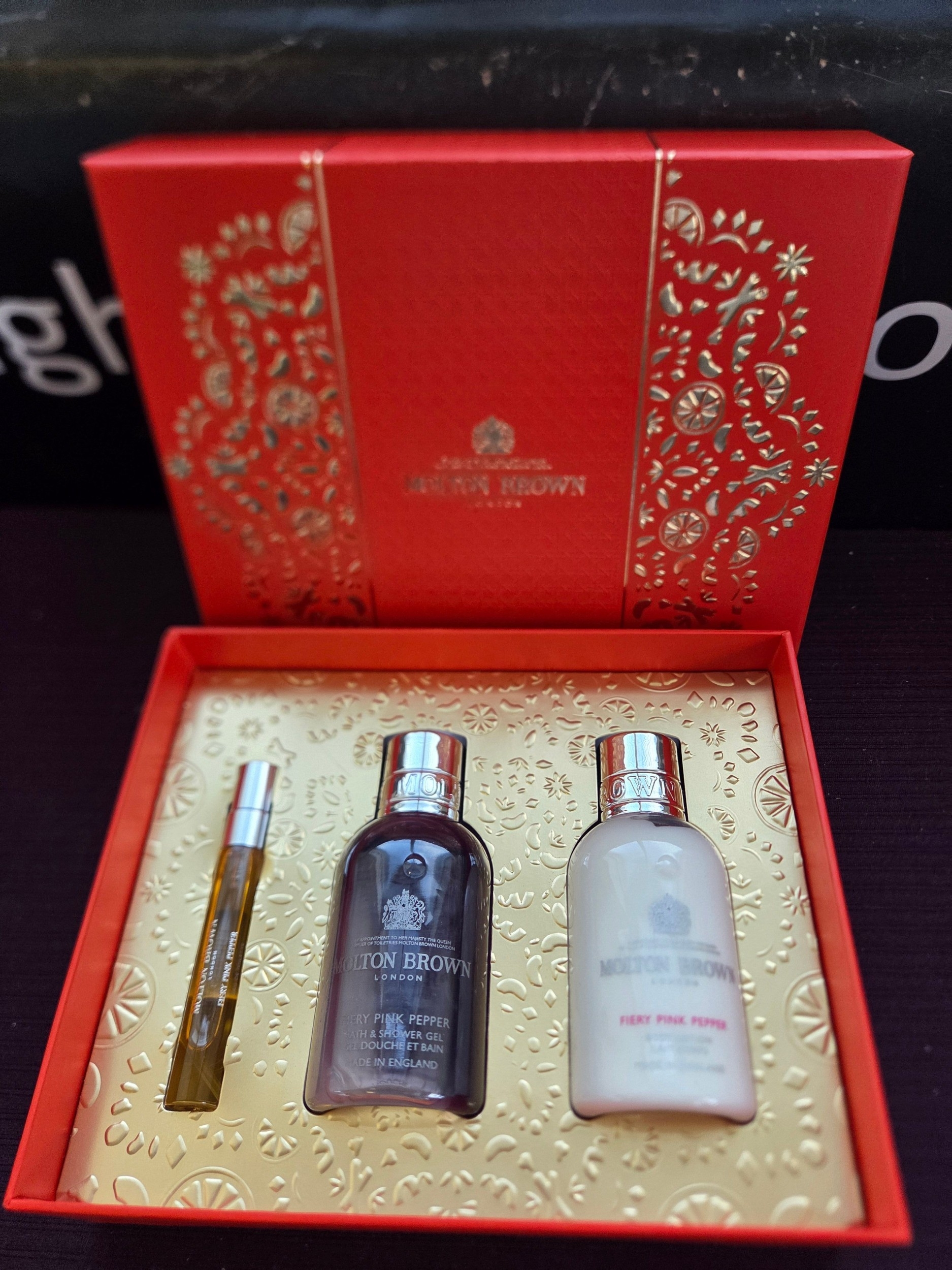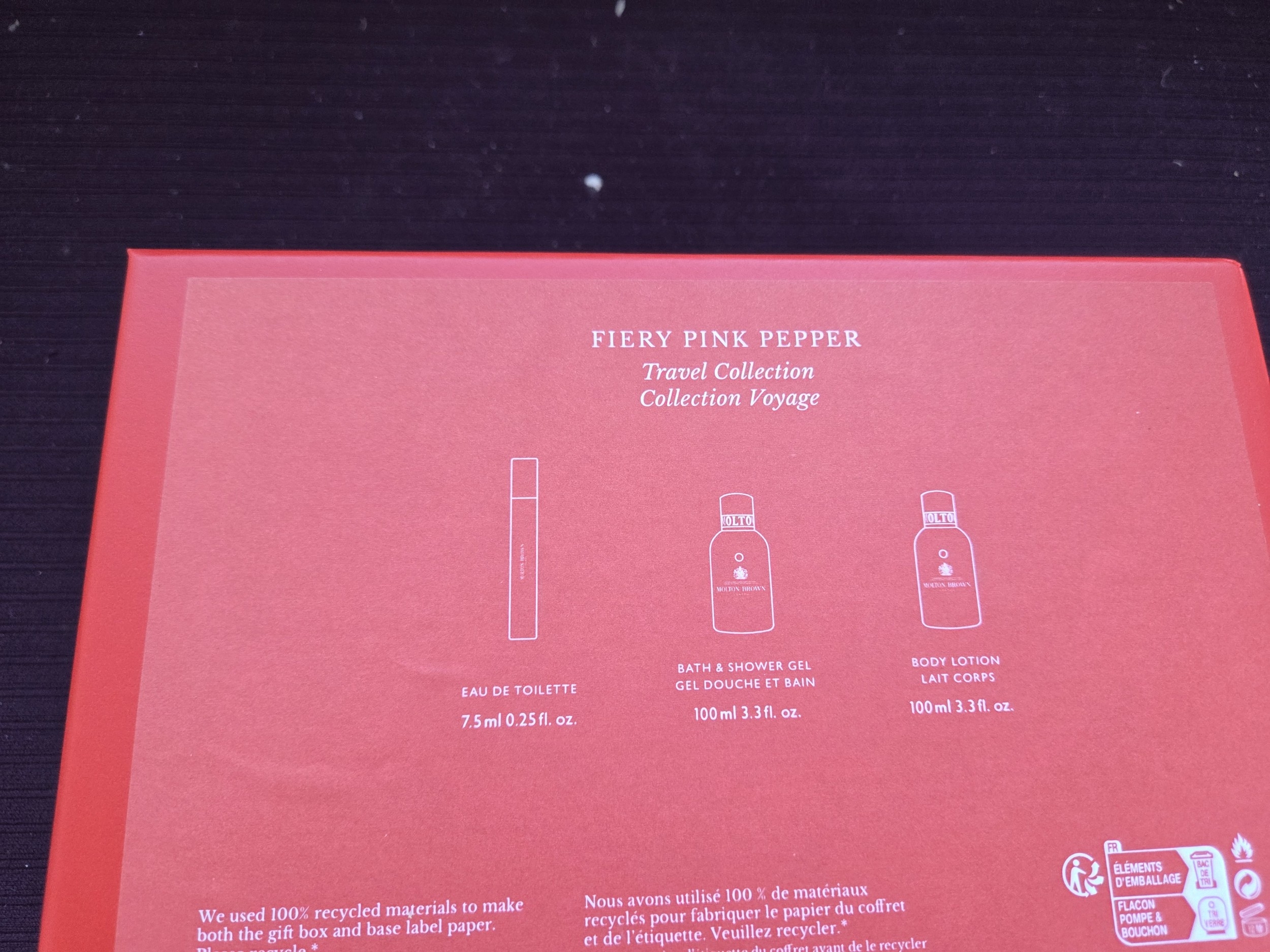 A Trio of Molton Brown Fiery Pink Pepper Travel Collection Products