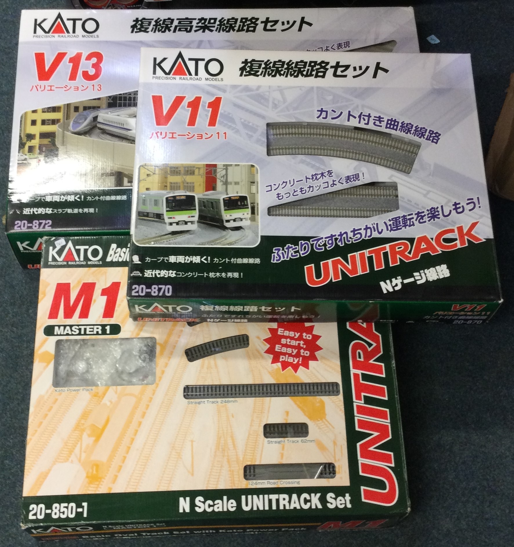 KATO: Three boxed track sets. Est. £20 - £30.