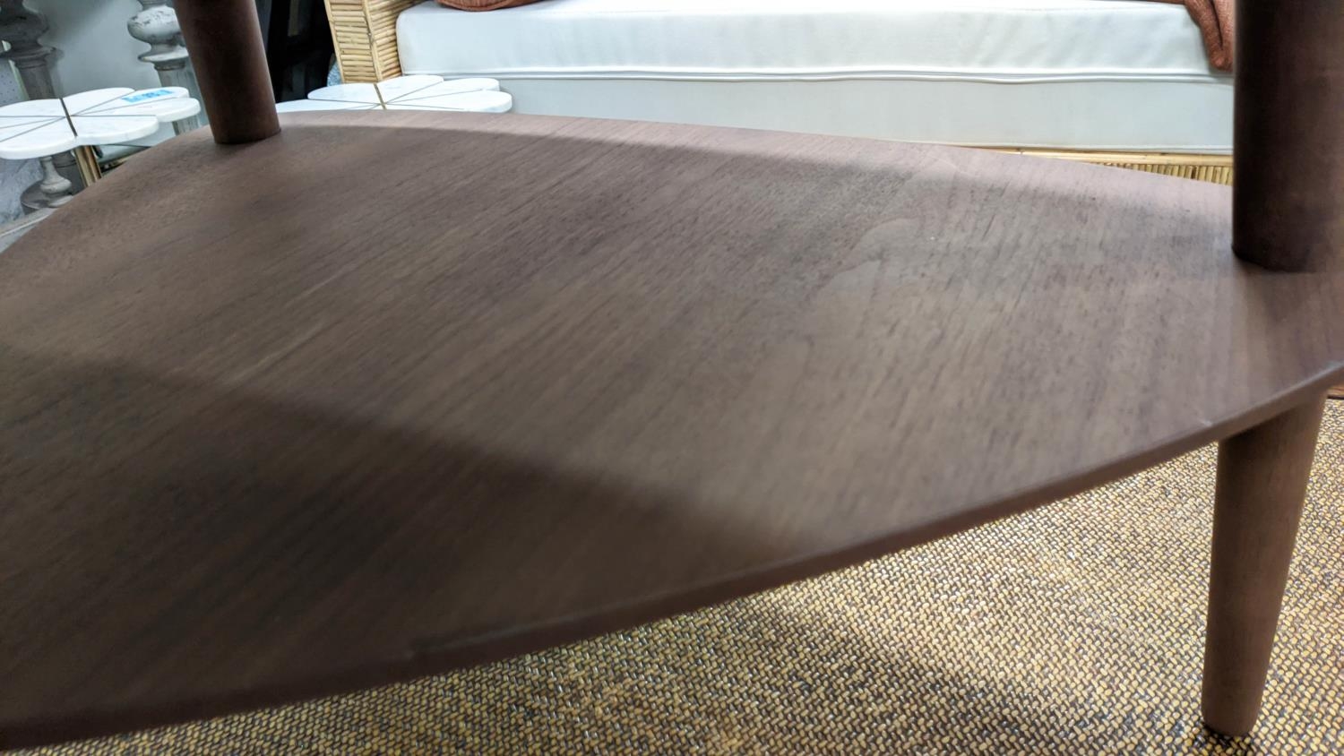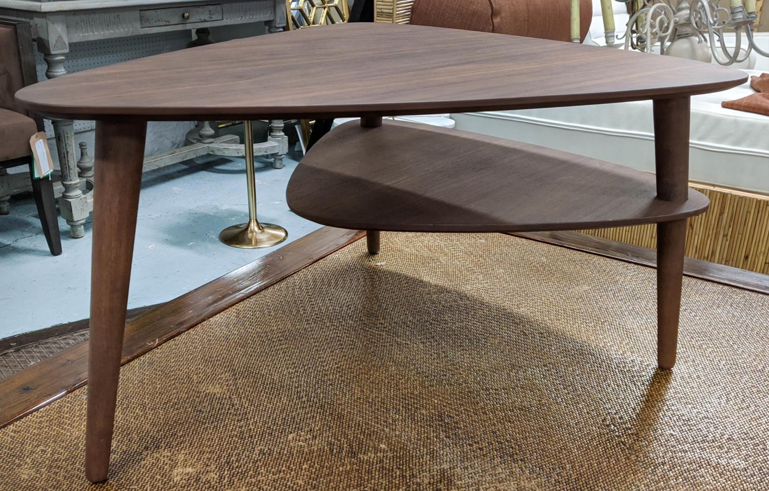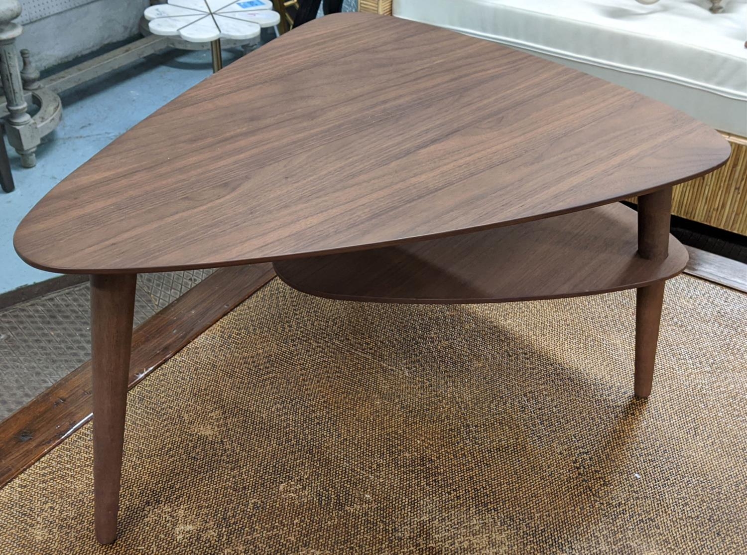 SIDE TABLE, 70cm D x 84cm W x 46cm H, triangular with undertier.