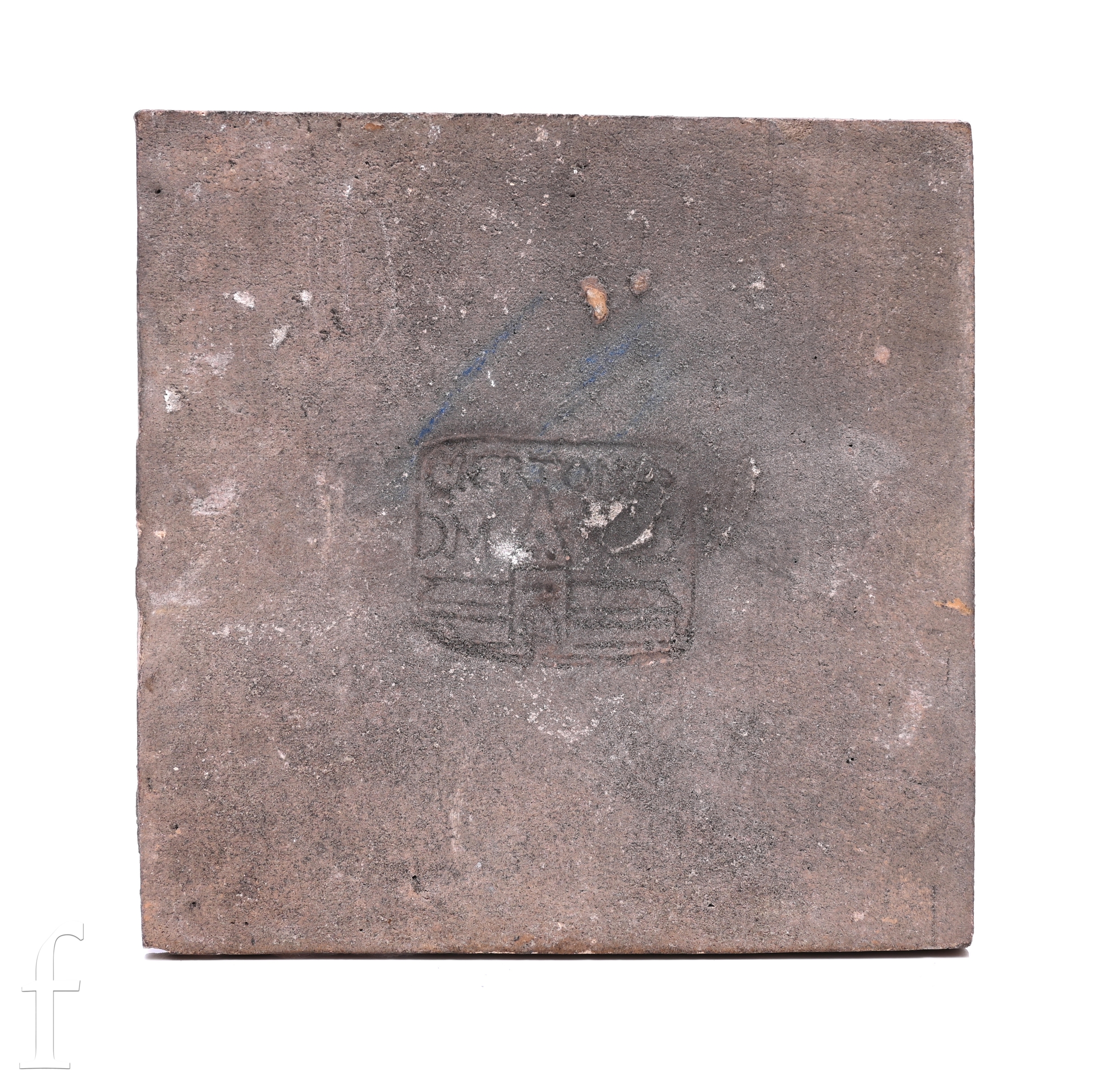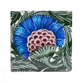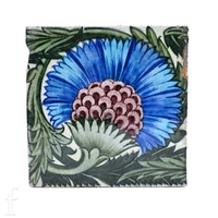 A William De Morgan Merton Abbey 8 inch plastic clay BBB tile, circa 1882-1888, vibrant tonal blue, green and puce stylised flower head on meandering leafy stem over opal ground, impressed marks, 20cm x 20cm.