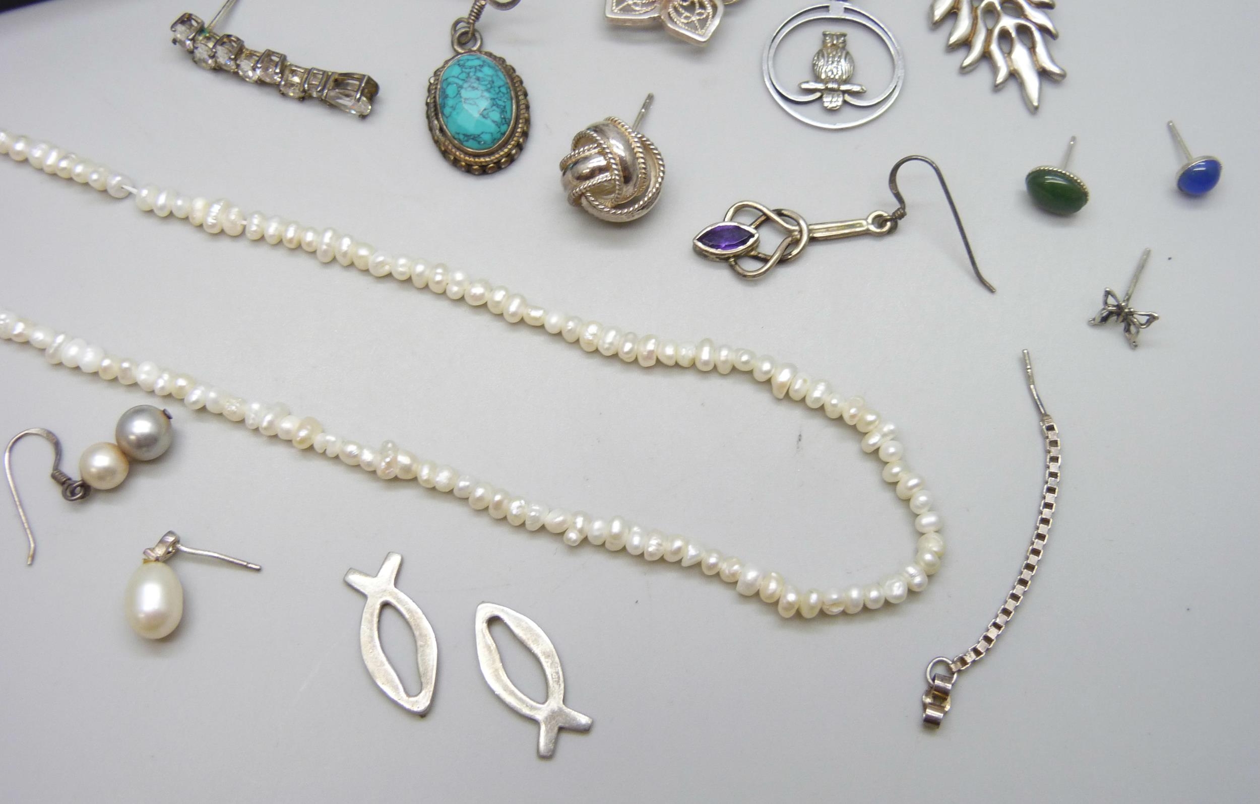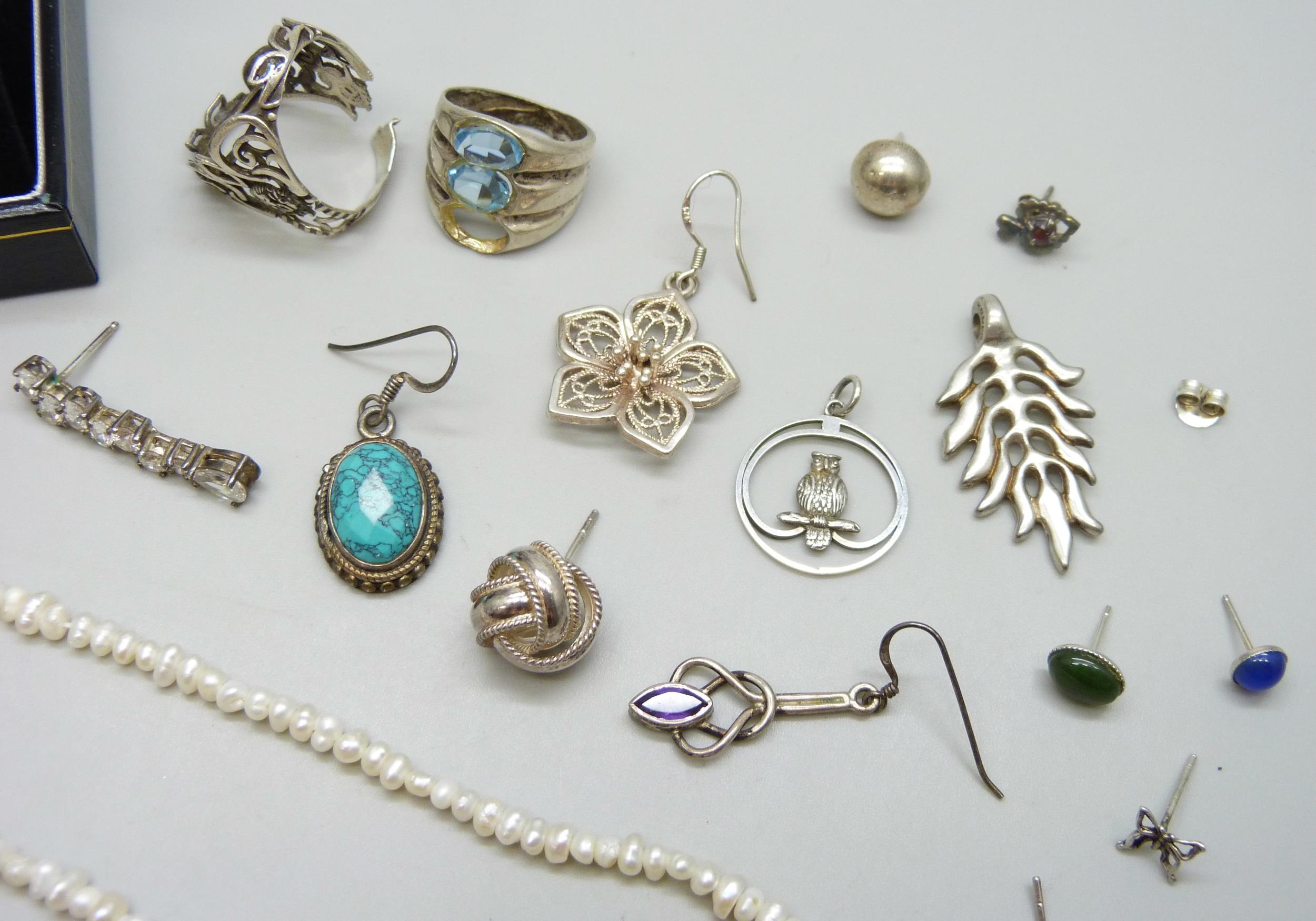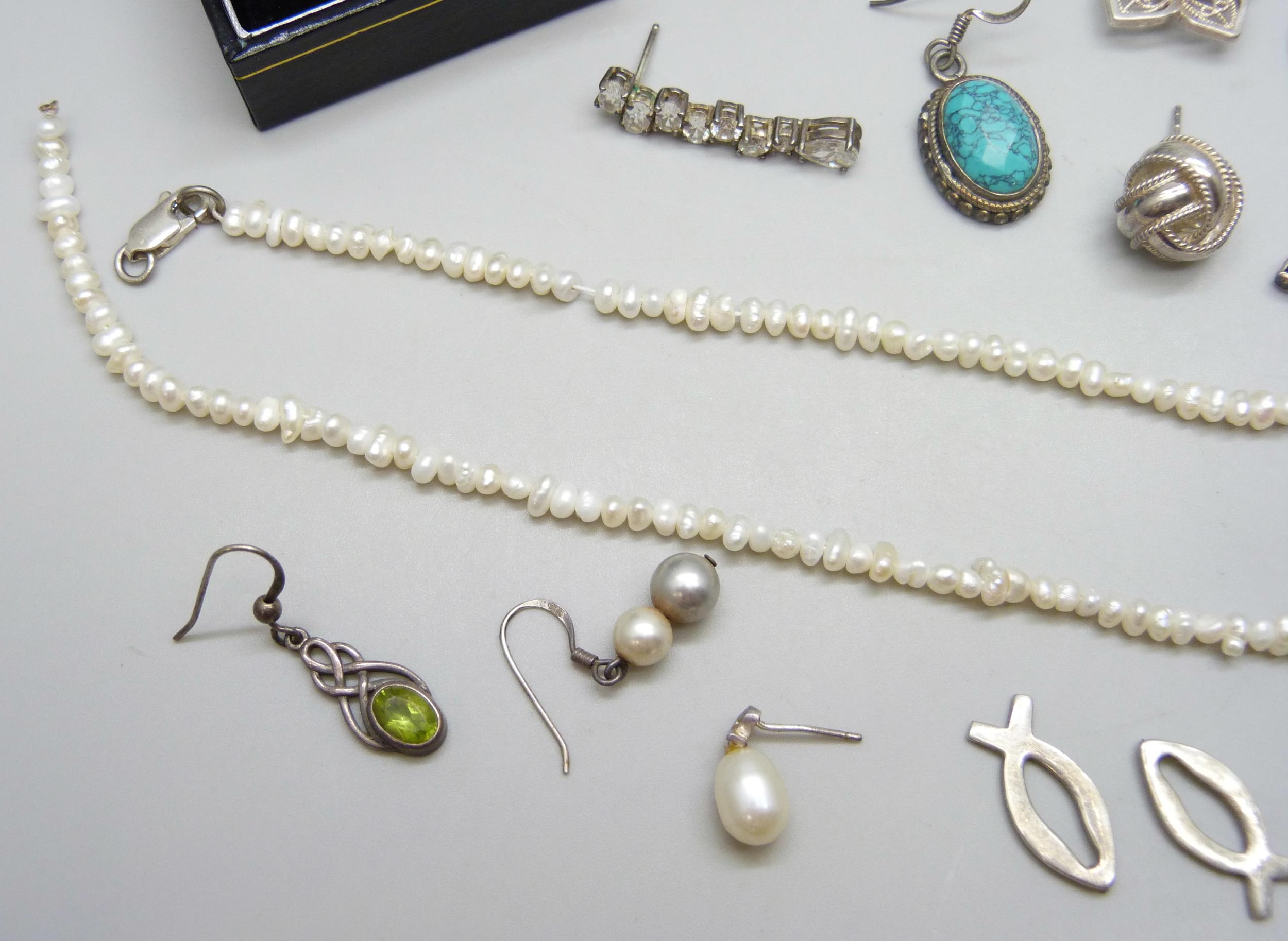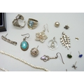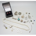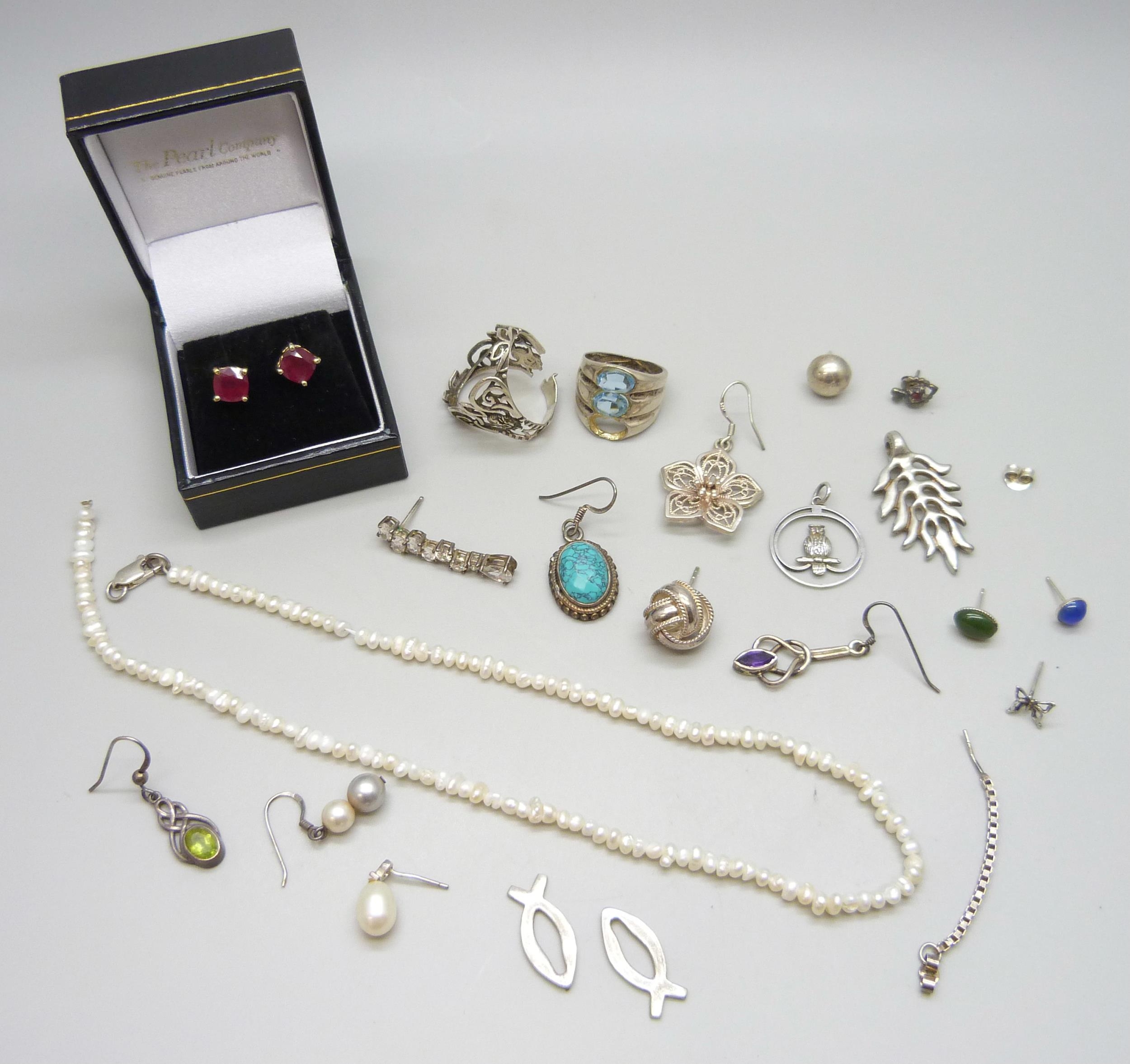 A collection of silver and white metal jewellery, a/f, and a pair of silver gilt earrings set with rubies