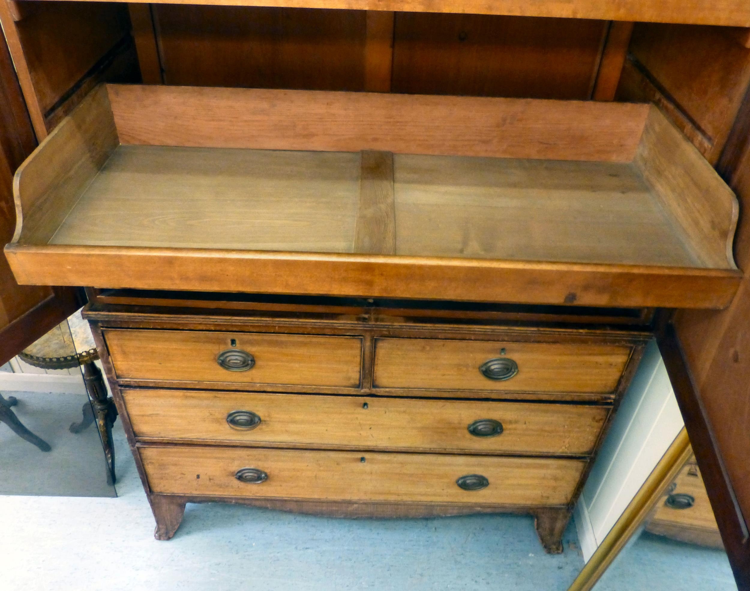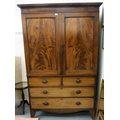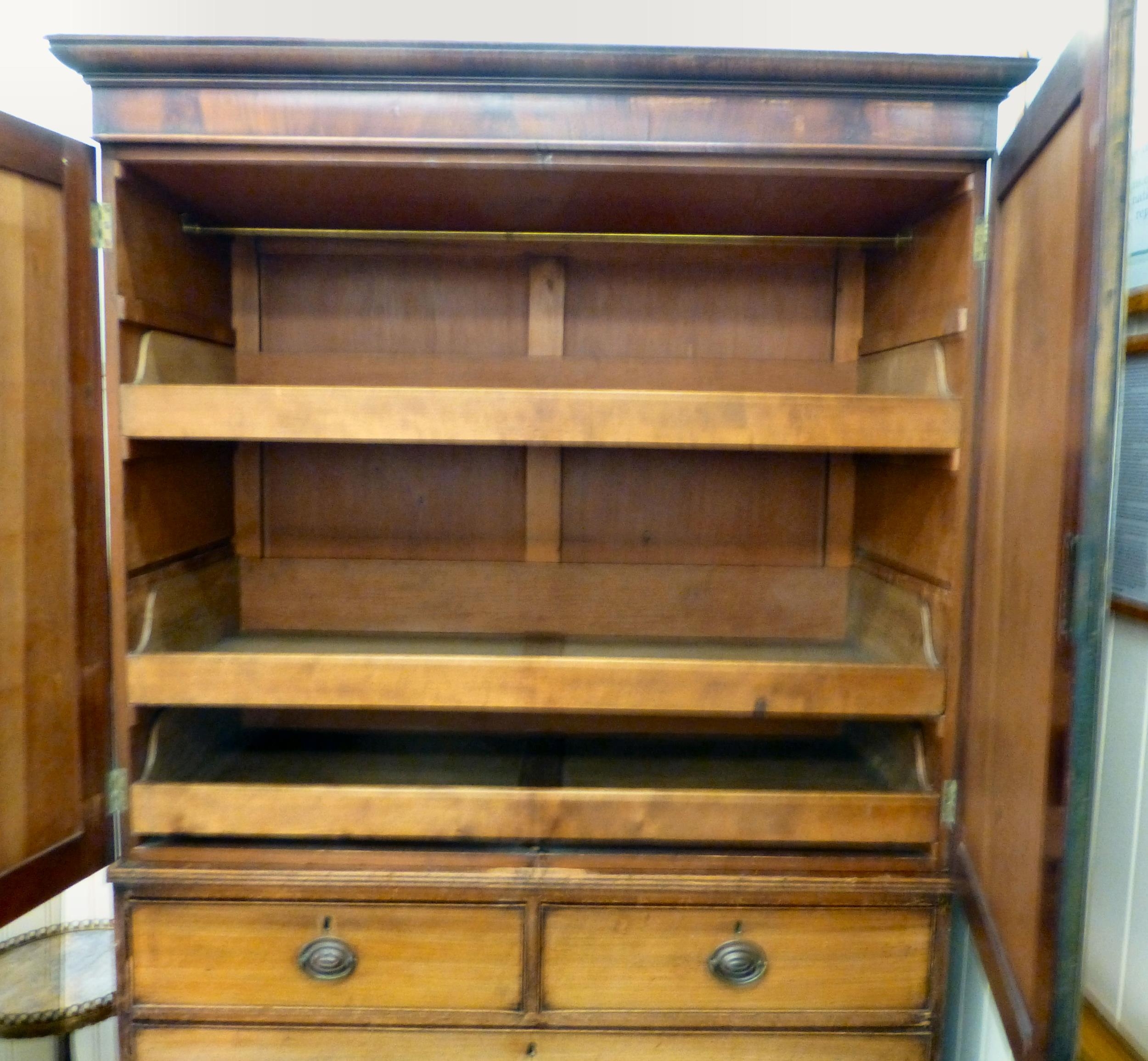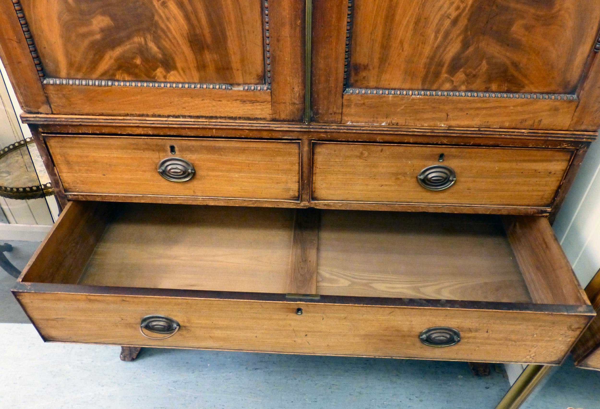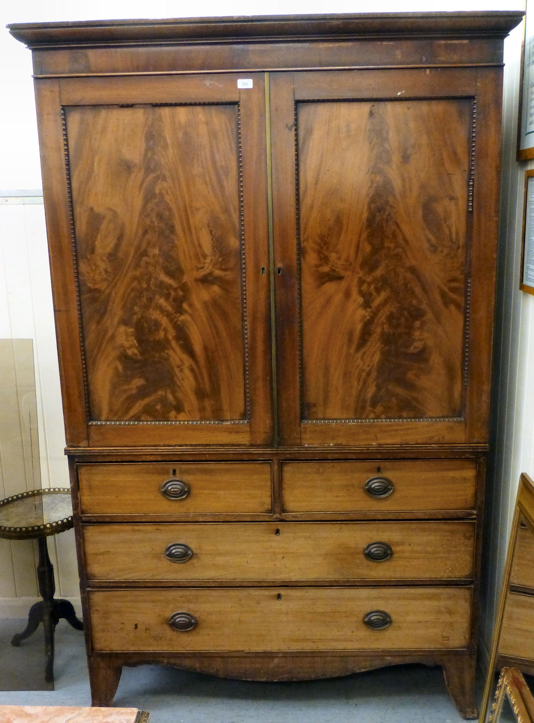 A George III mahogany linen press with two doors, over two short/two long drawers, raised on bracket feet 80"h 48"w