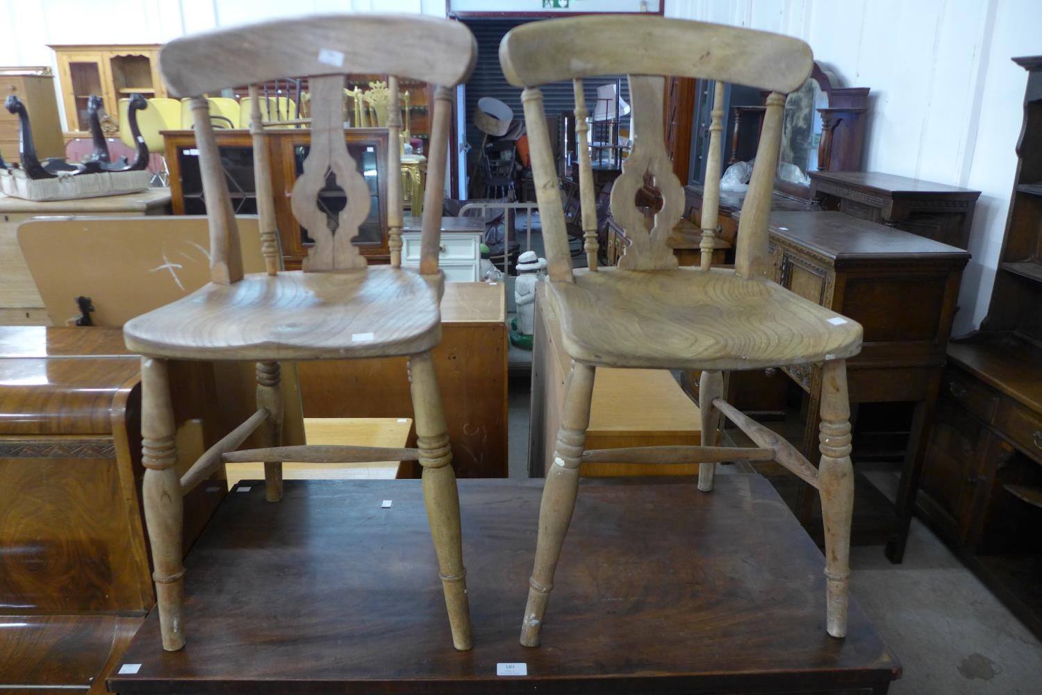 A pair of Victorian elm and beech kitchen chairs