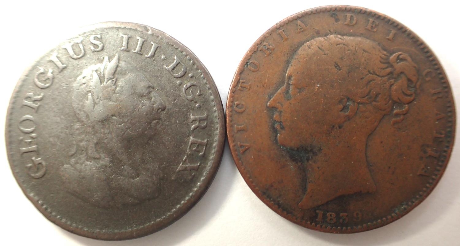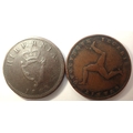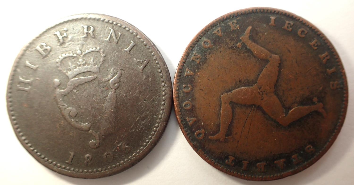 Isle of Man and Hibernia - early copper farthings. P&P Group 0 (£5+VAT for the first lot and £1+VAT for subsequent lots)