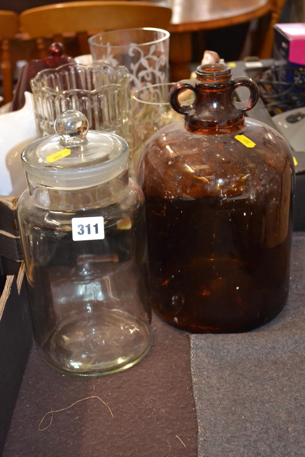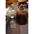 GLASS SHOP SWEET JAR AND BROWN DEMI-JOHN