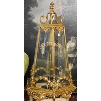 Holding foliage entwined branches aloft, standing on reeded columns hung with swags.