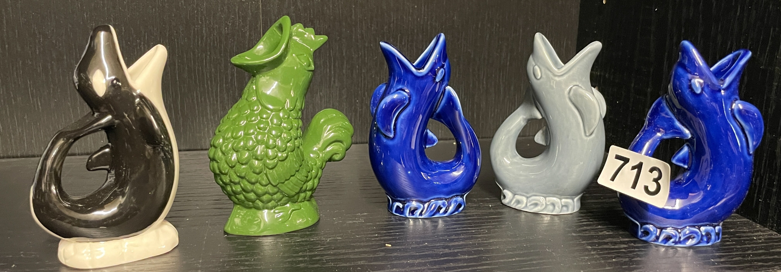 Five gluggle jugs