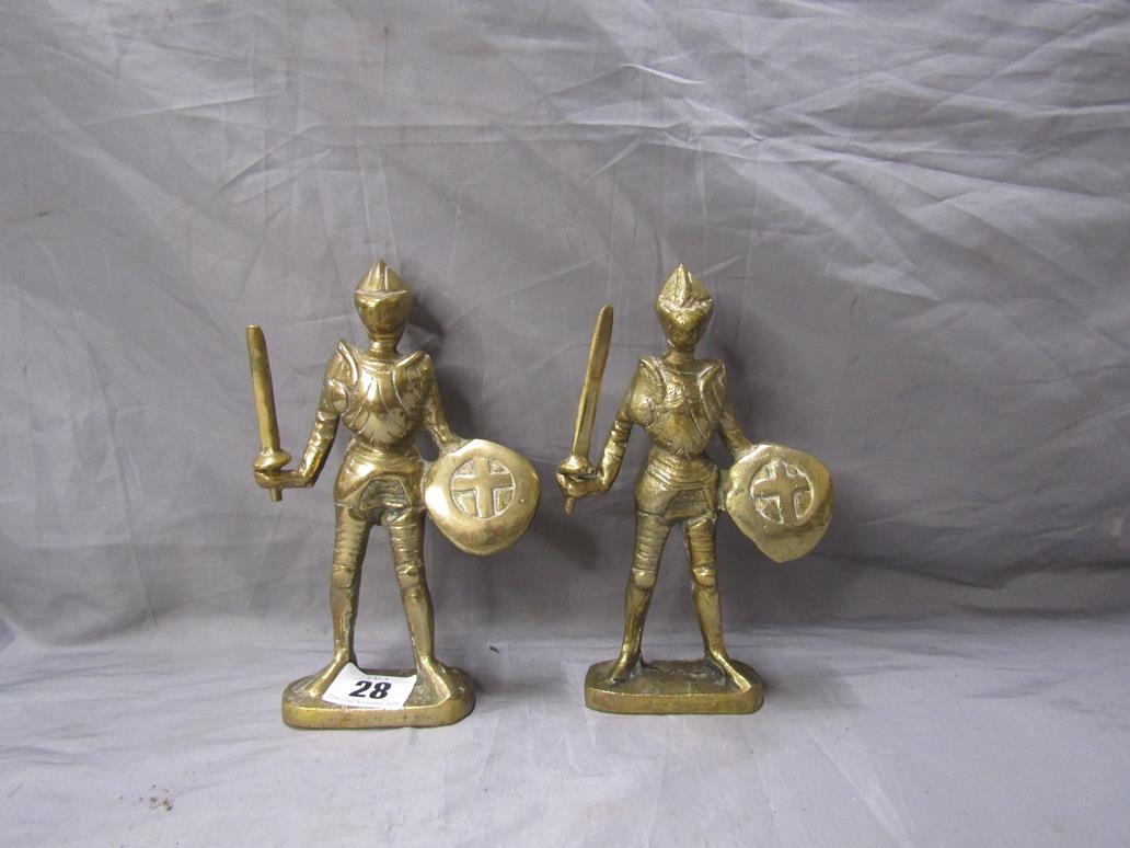 TWO REPRODUCTION BRASS KNIGHT FIGURES
