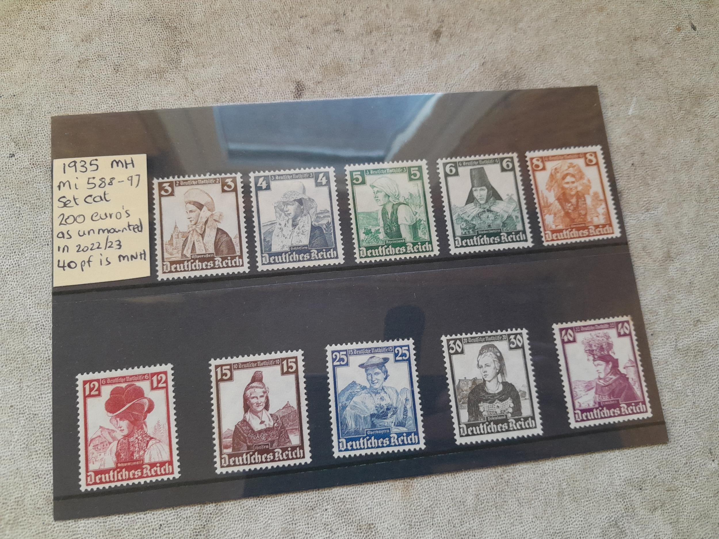 Stamps : 1935 mi 588- 597 mint hinged 40 pf is mnh set cat 200 euros as mnh 2022- 23