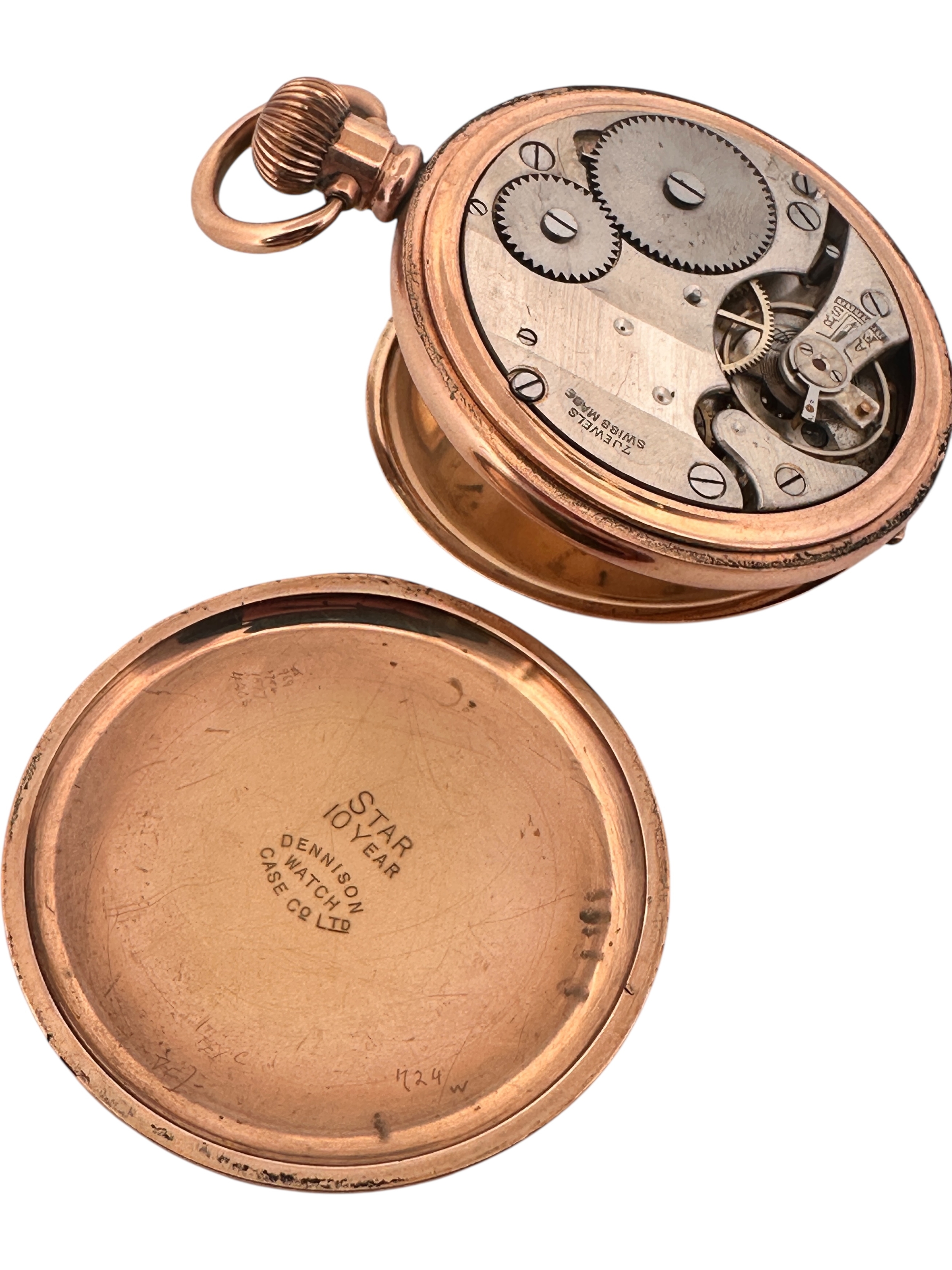 Half Hunter Pocket Watch, Gold Plated Dennison 'Star' Watch Case. Watch is Ticking