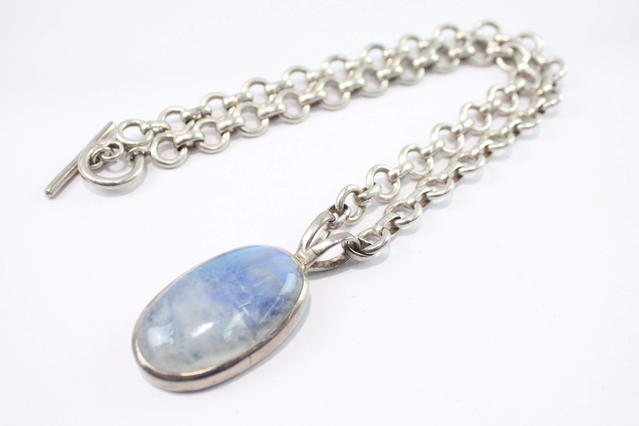 Sterling Silver Moonstone Pendant Necklace (78g)