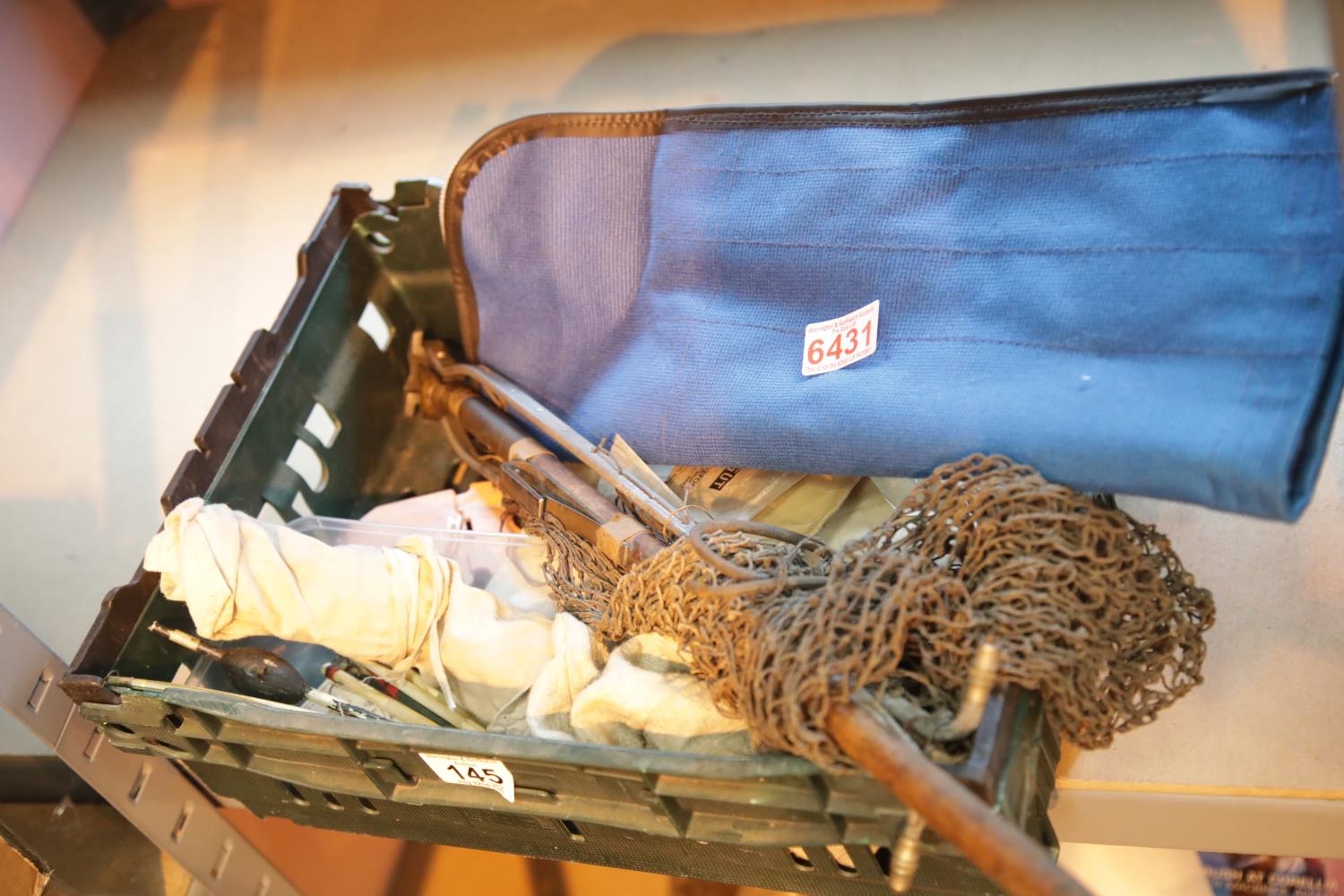 Fishing tackle including vintage landing net. P&P Group 3 (£25+VAT for the first lot and £5+VAT for subsequent lots)
