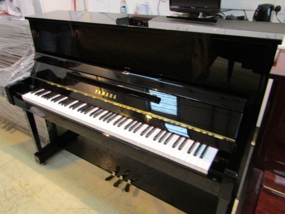 Yamaha (c2007) A Model YM5 upright piano in a bright ebonised case.