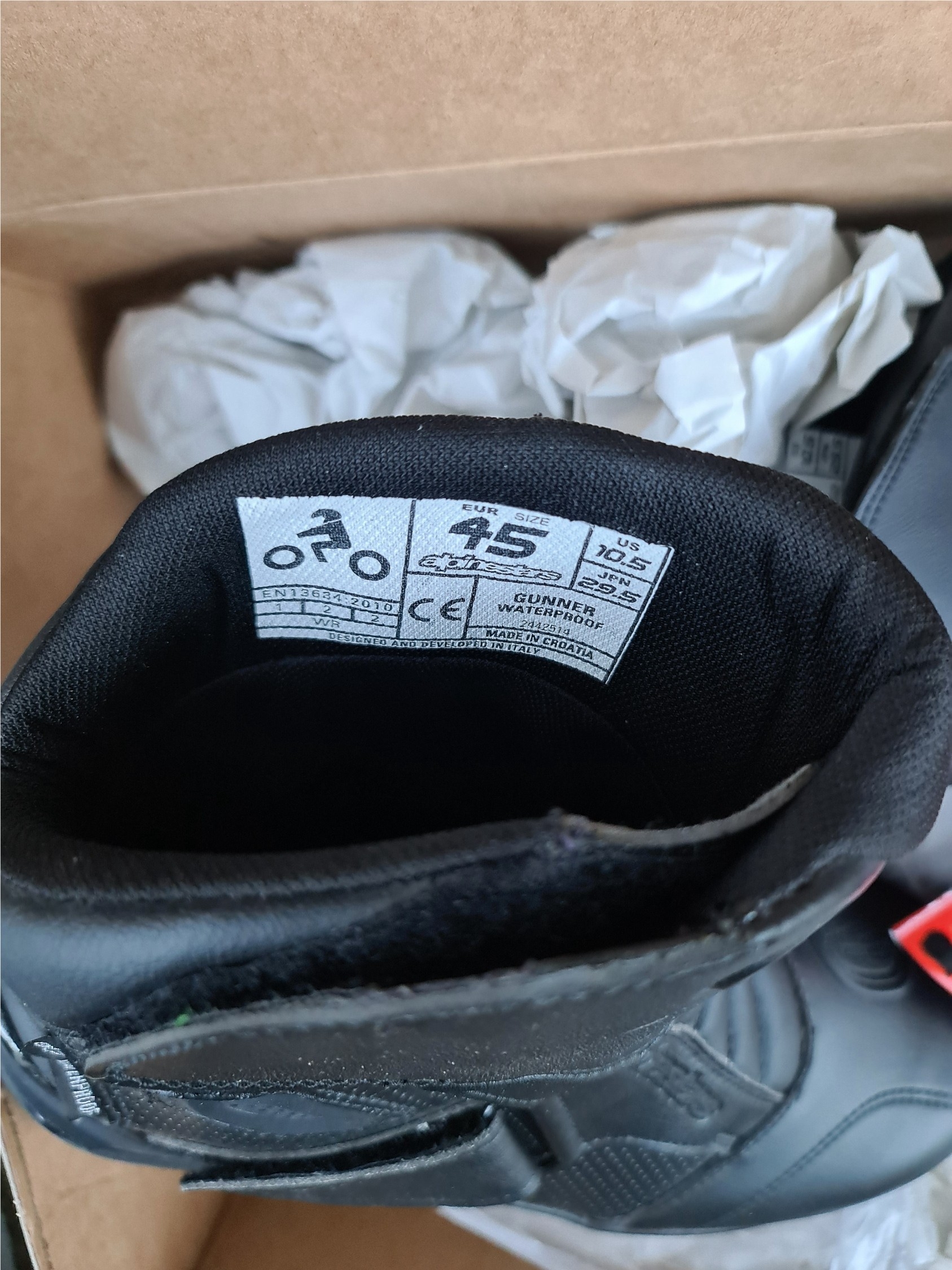 Alpinestars Gunner Moto Motorbike Motorcycle Waterproof Boots Black EU45 UK 10.5. Boxed With Labels Attached. Shipping is available. Please ask for a quote before bidding. Where possible we combine shipping costs. Remember, if you are the highest bidder above reserve on this Lot you have bought the item and are legally responsible for the item. Viewing is recommended in either person or via video link. Contact us to arrange.