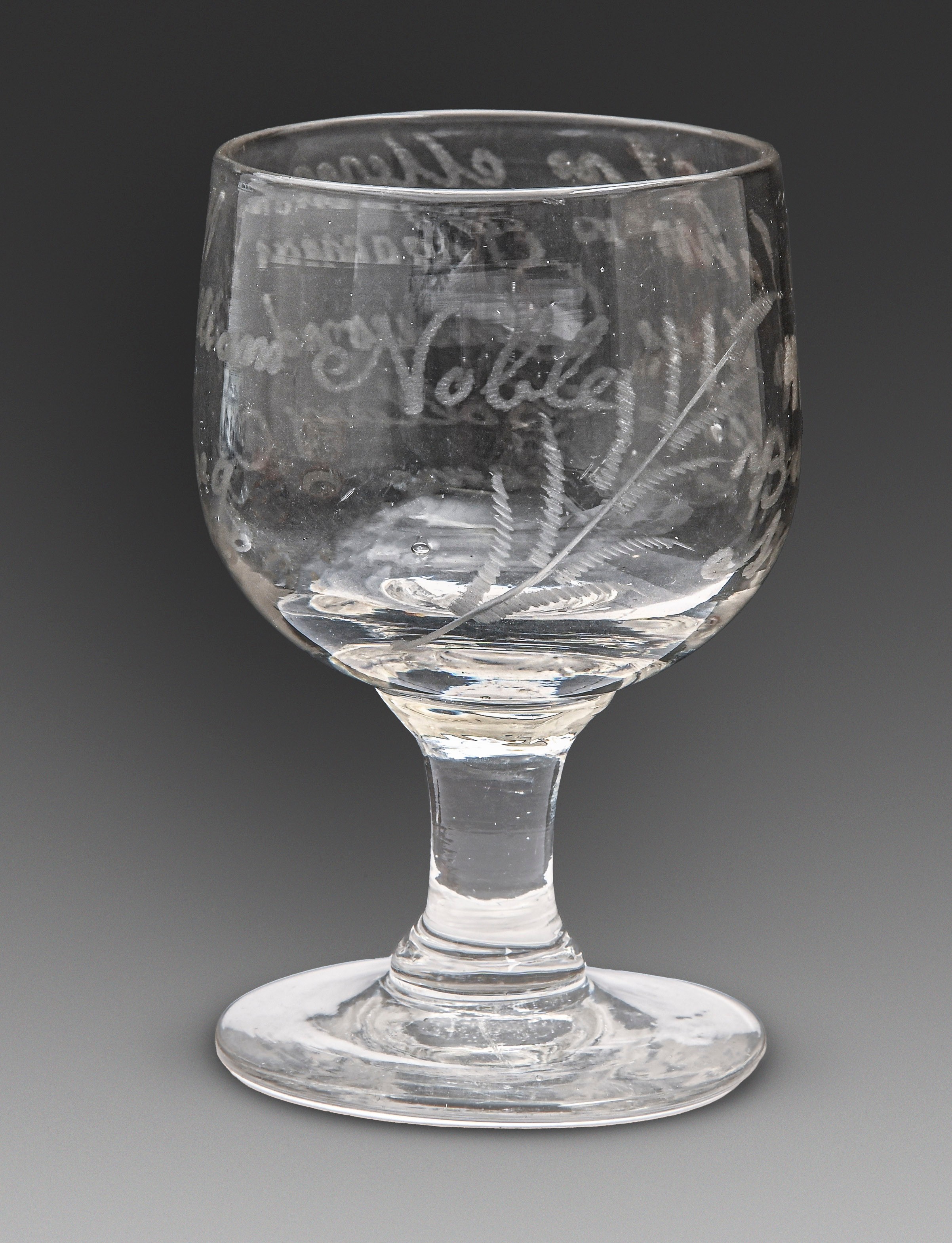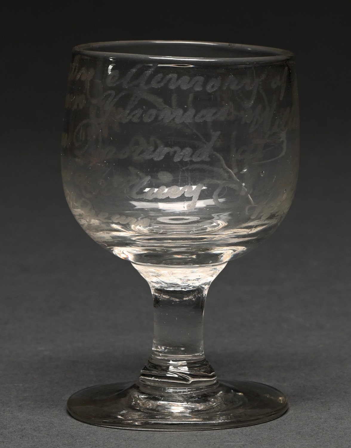 A Victorian glass commemorative rummer, the cup bowl engraved 'In Memory of John & Thomas William Nabley who was Drowned at Barrington Colliery June 9 aged 11 & 9 years'