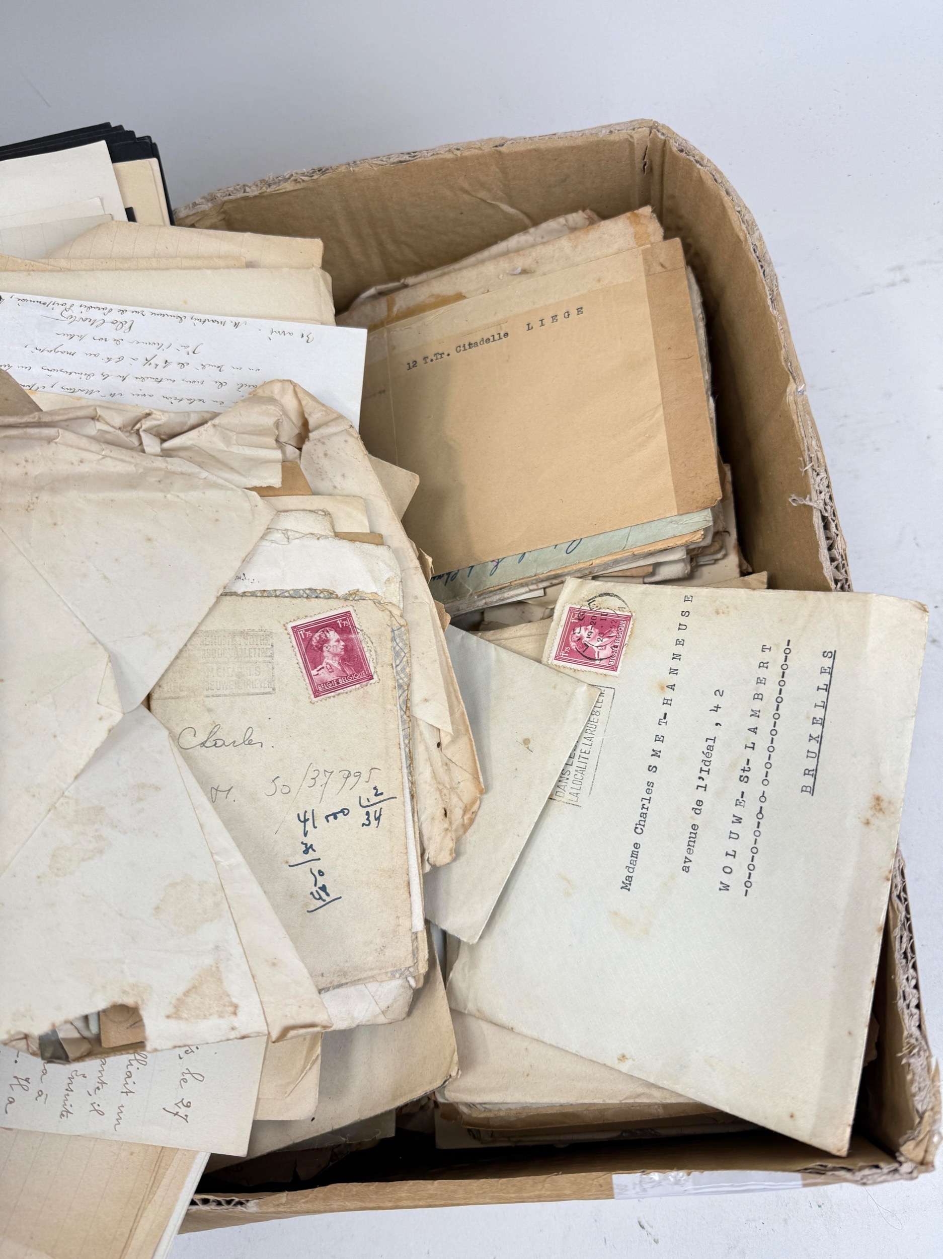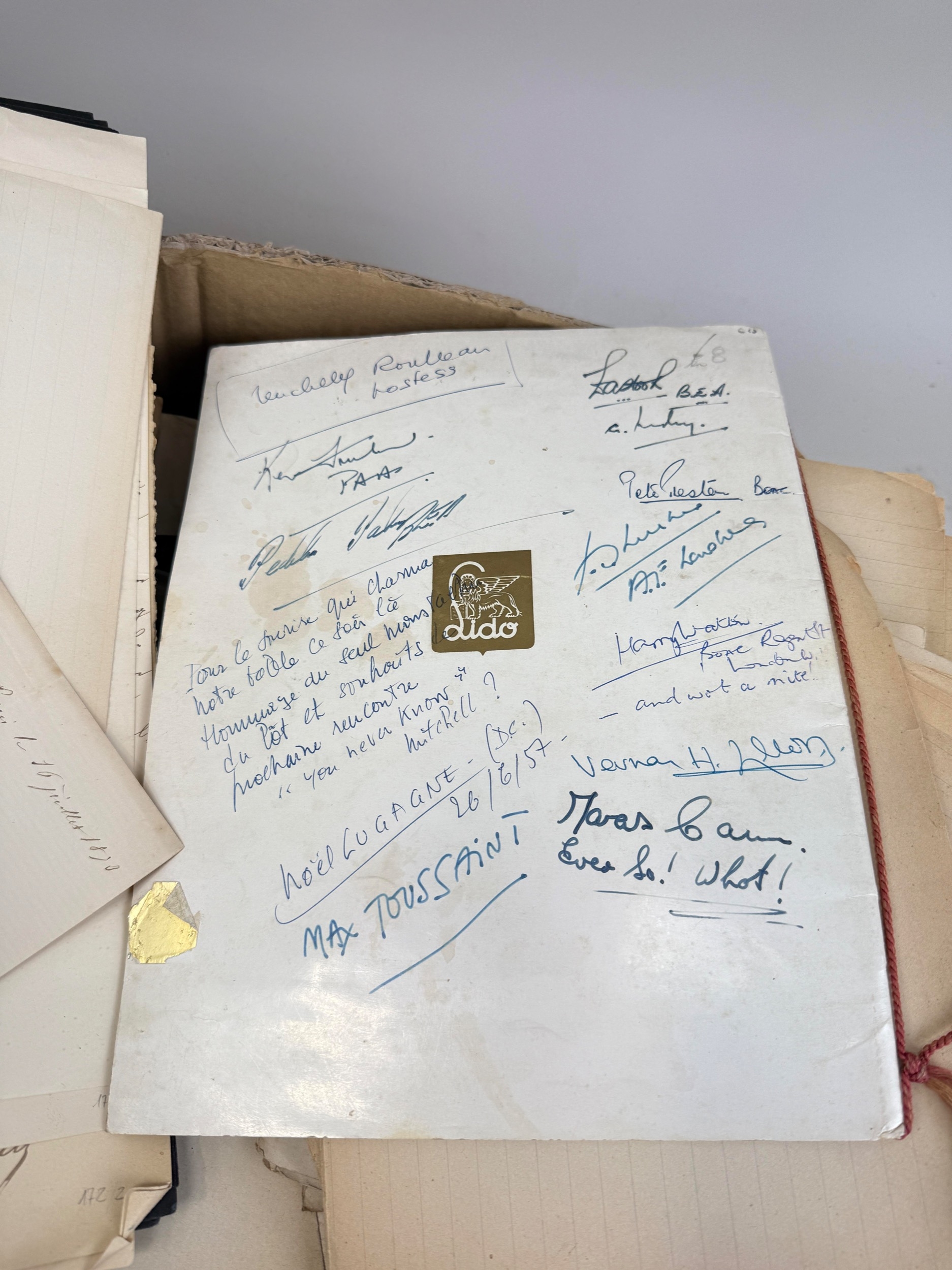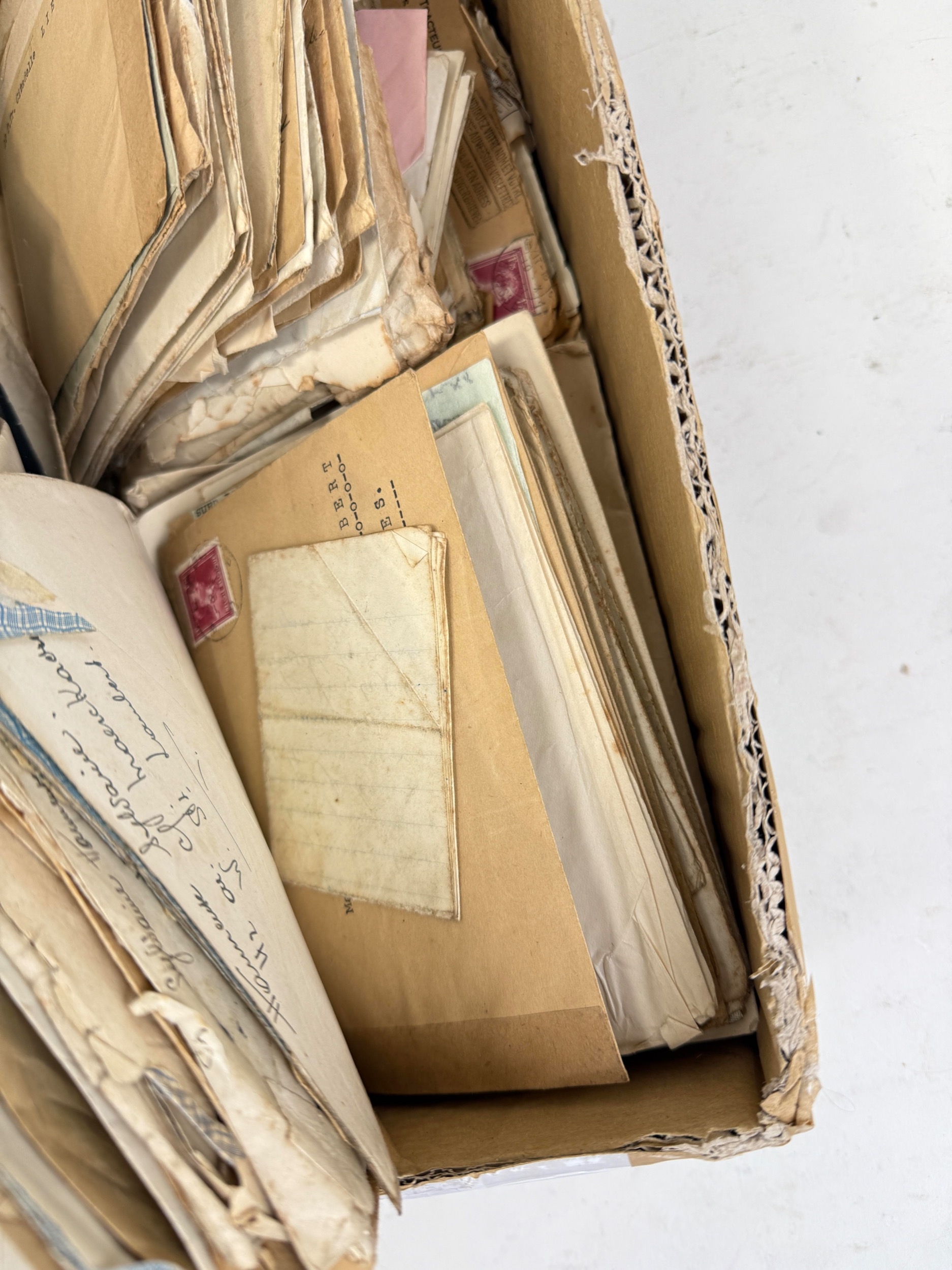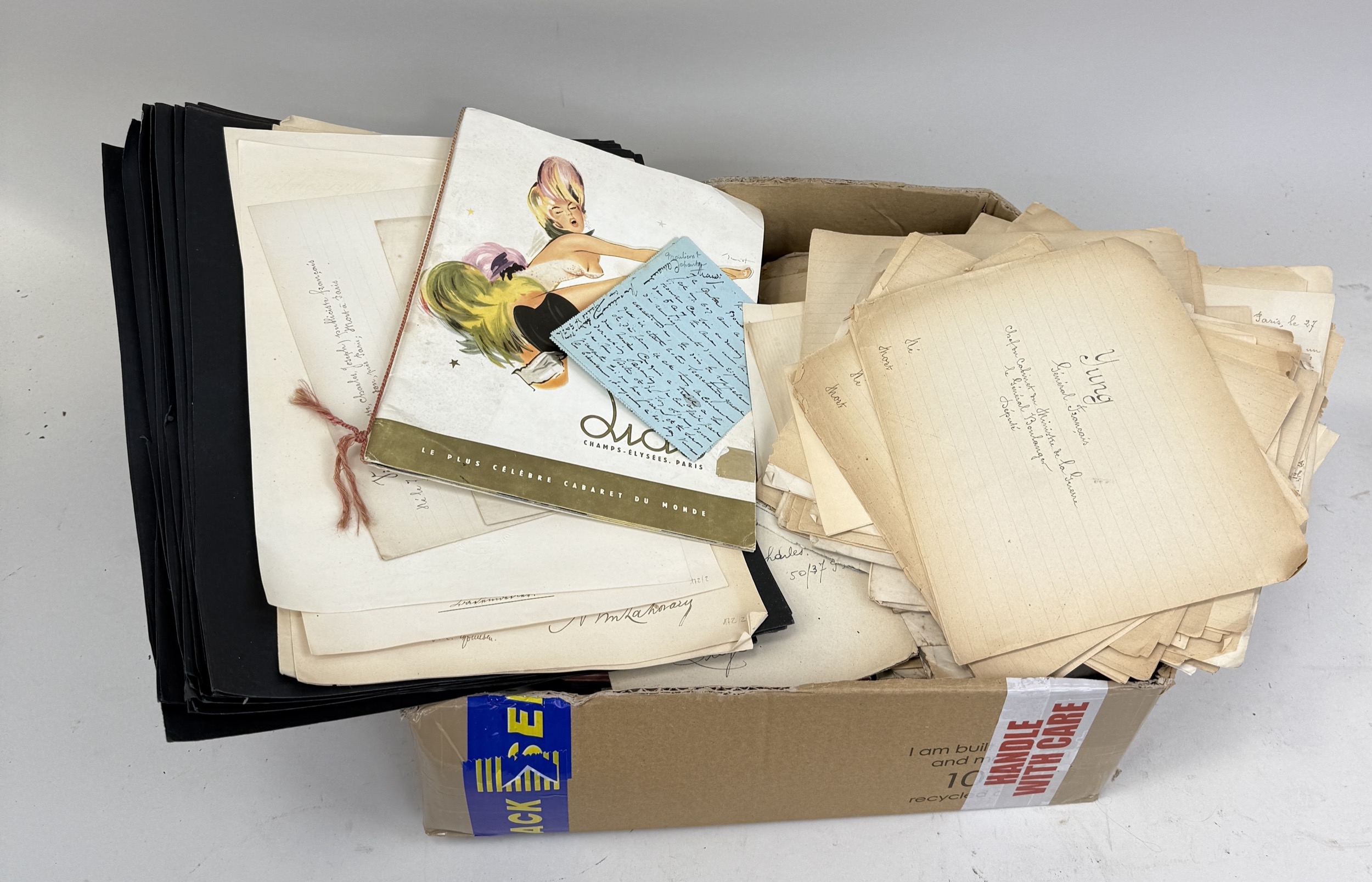 A BOX OF MOSTLY FRENCH AUTOGRAPHS, SIGNATURES AND CORRESPONDENCES