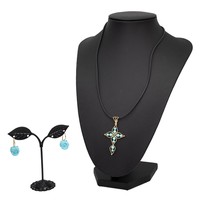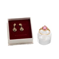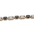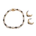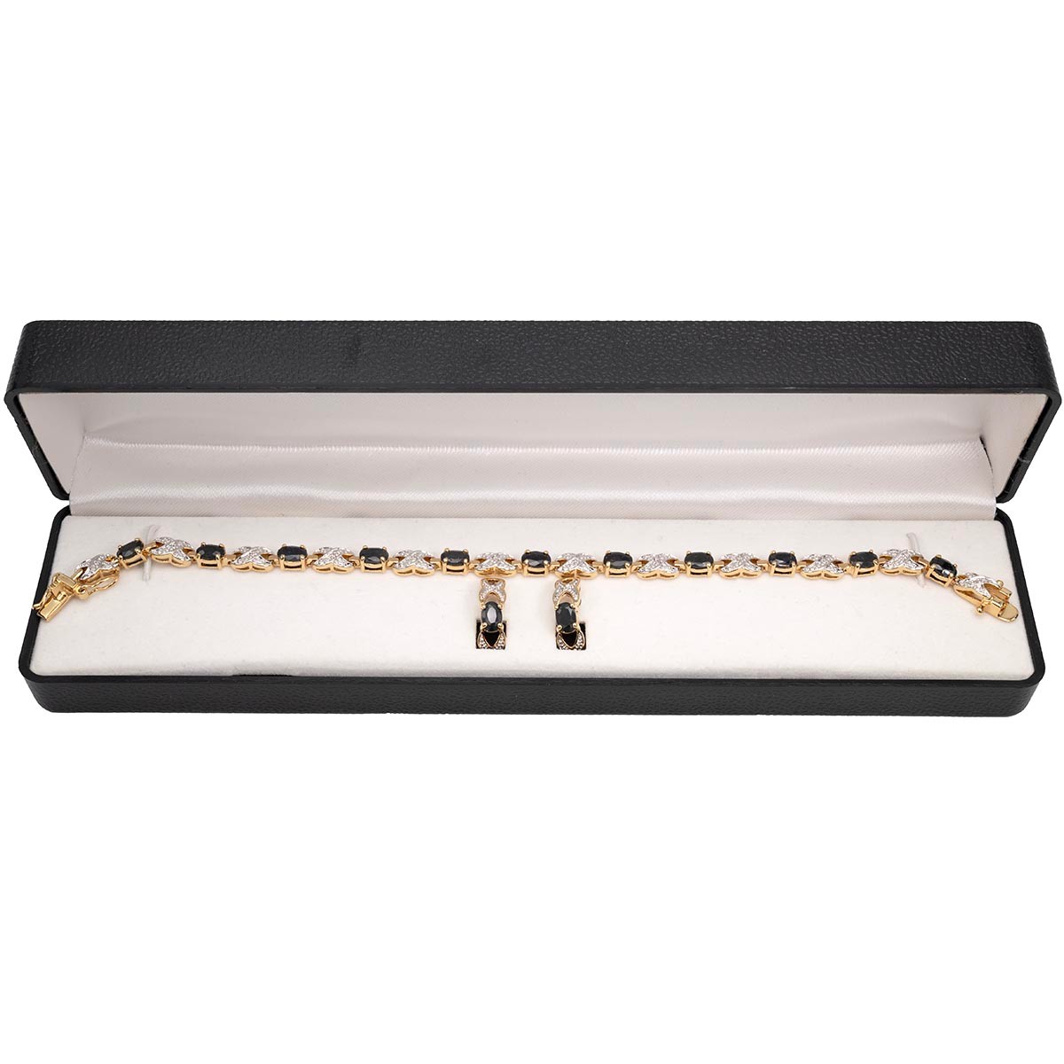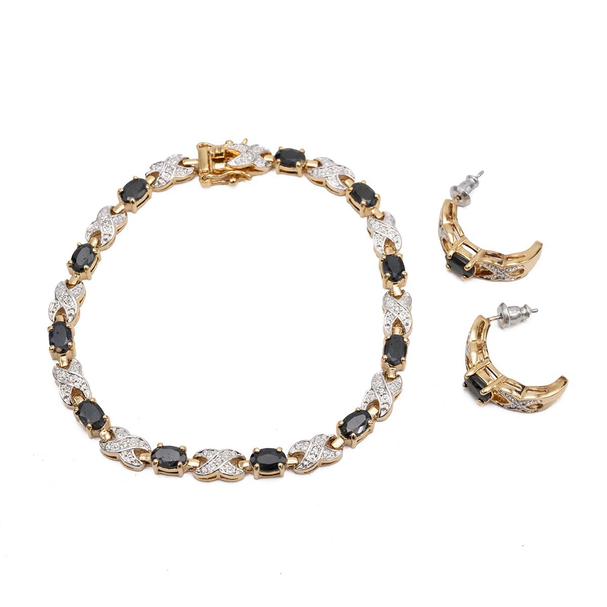 A 14ct two-tone gold-plated sapphire bracelet, L19.5cm, and an earring set, in original box.