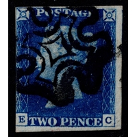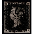 GB 1840 1d black plate 9 KJ 4m fine black cross with breaks similar to WOTTON-U-EDGE faintest of bends else vfu sg2 Cat. £550