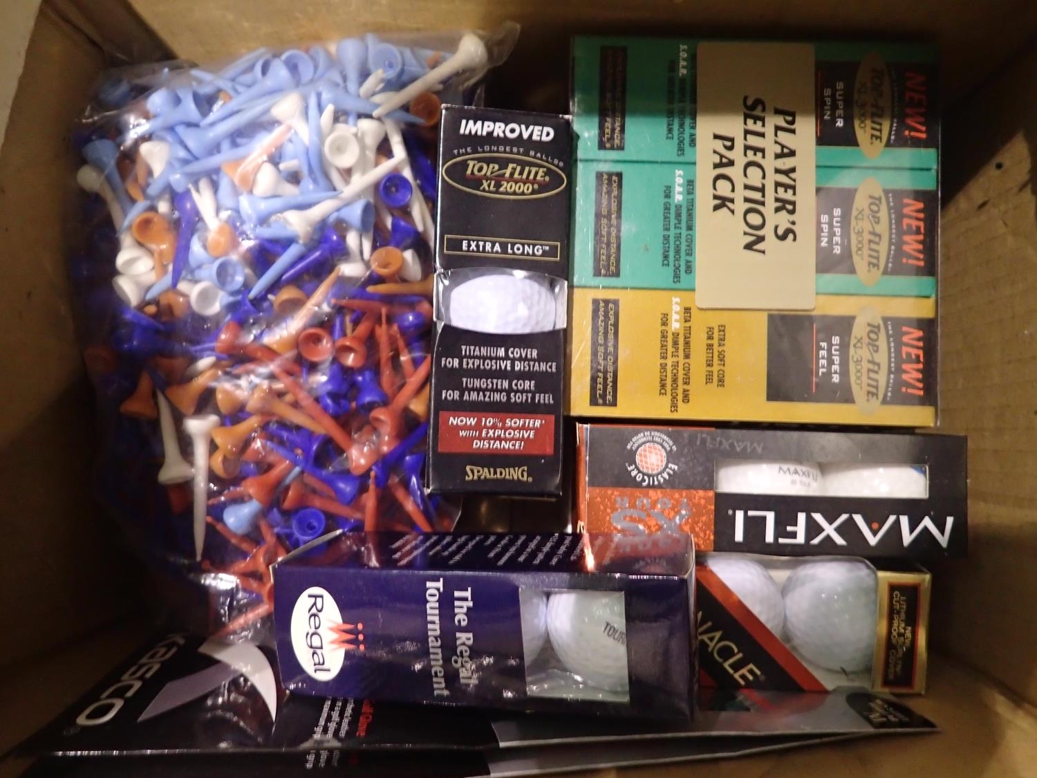 Selection of golf ball and tees, all new in boxes and golfing gloves etc. Not available for in-house P&P