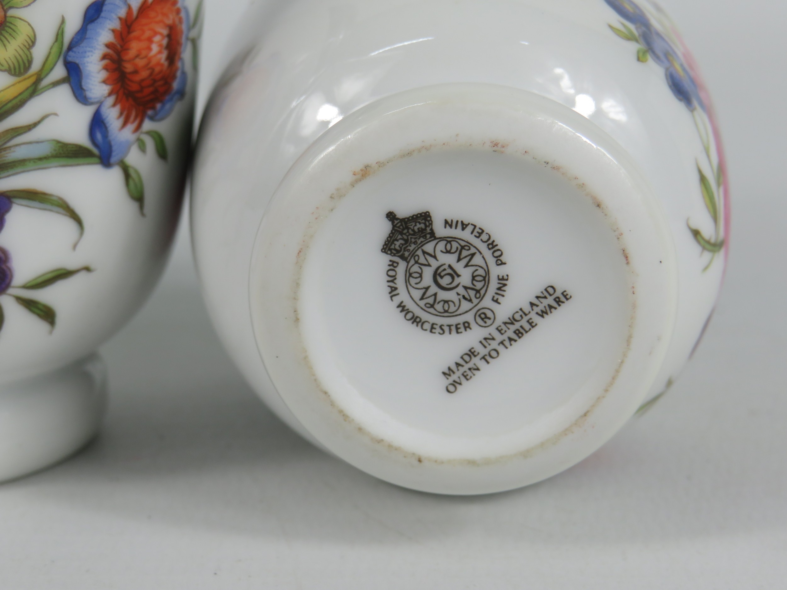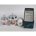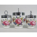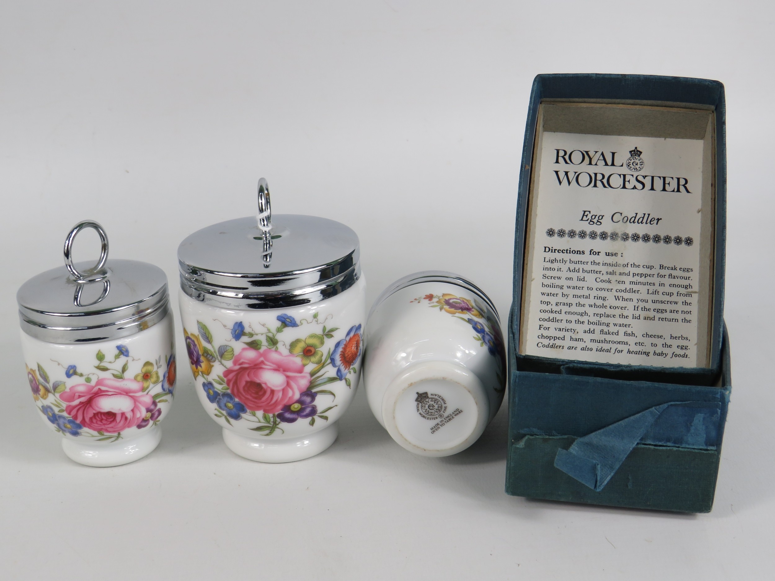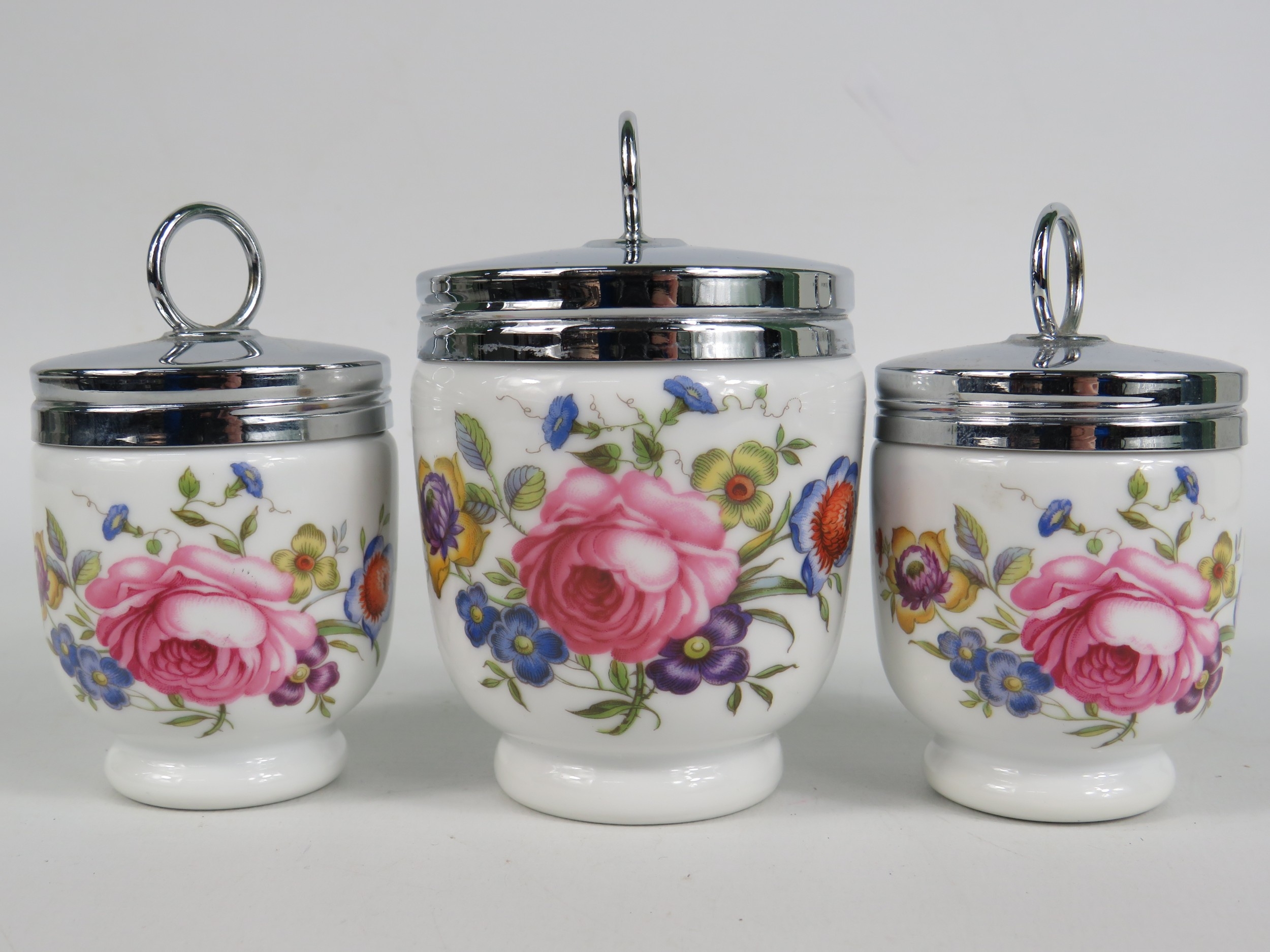 Three Royal Worcester floral egg coddlers with chrome lids - tallest 8cm