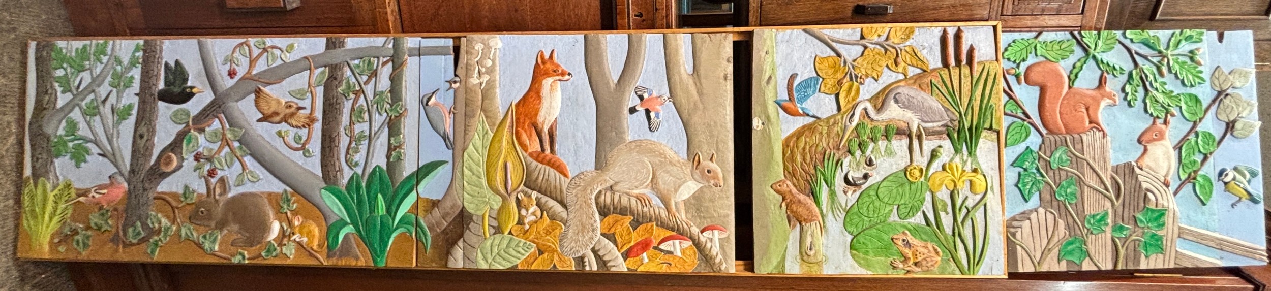 WOODEN CARVED AND PAINTED ANIMAL PANEL COLLAGE