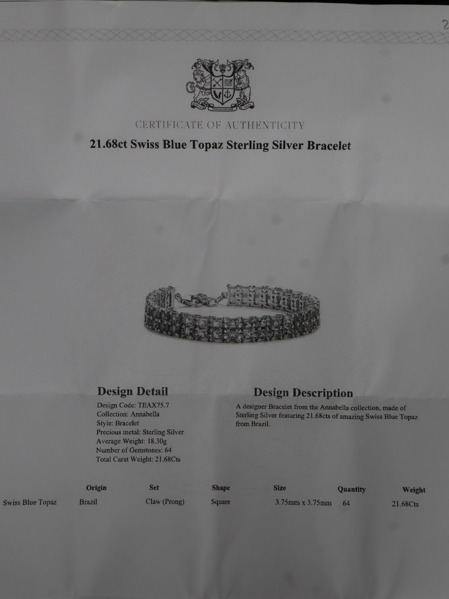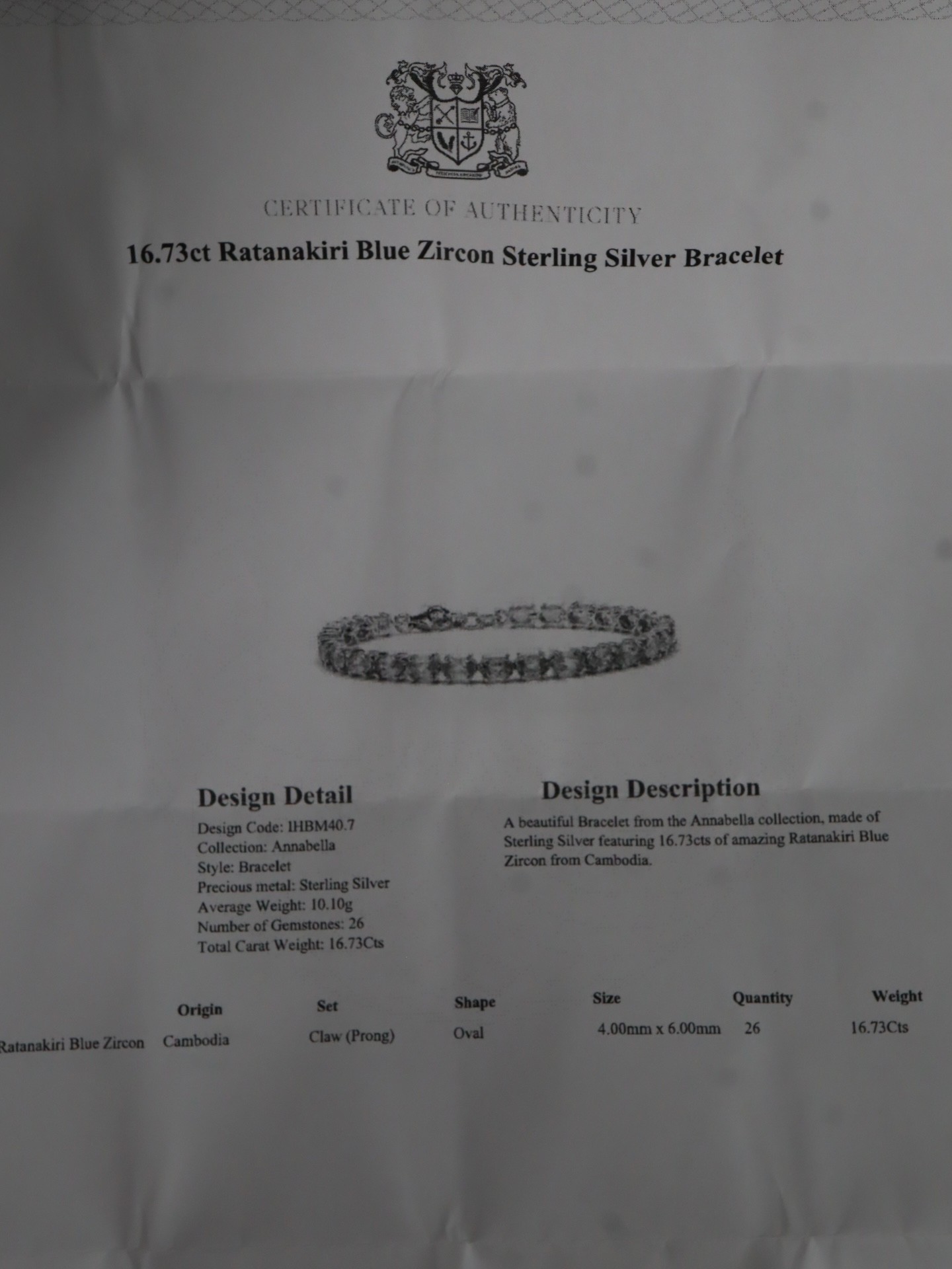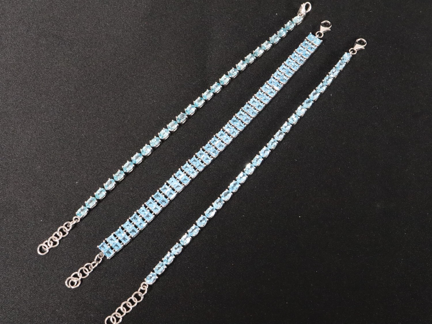 16.73ct Ratanakiri Blue Zircon Sterling Silver Bracelet, 2168ct Swiss Blue Topaz Sterling Silver Bracelet, 14.35ct Swiss Blue Topaz Sterling Bracelet - 8"
