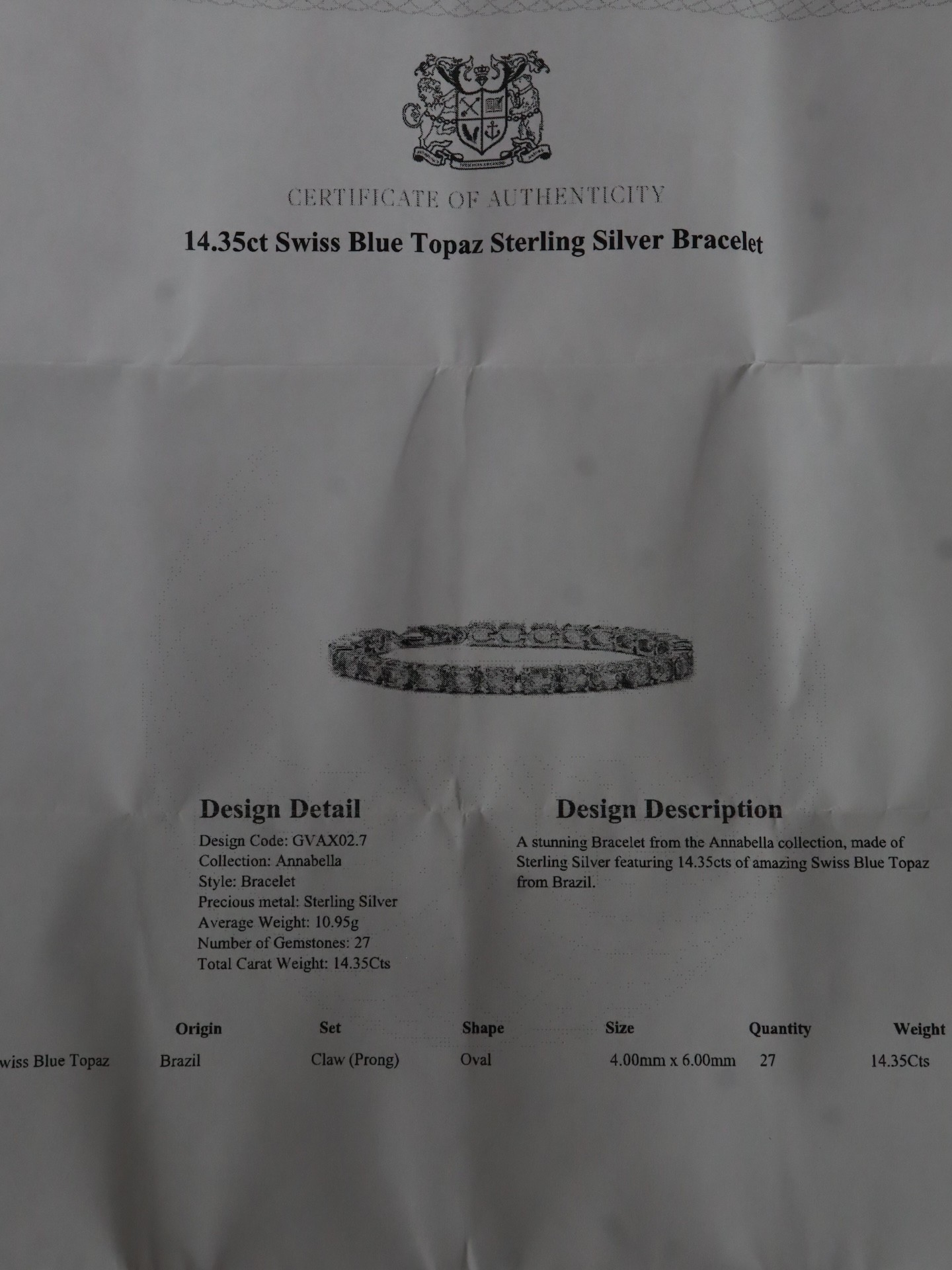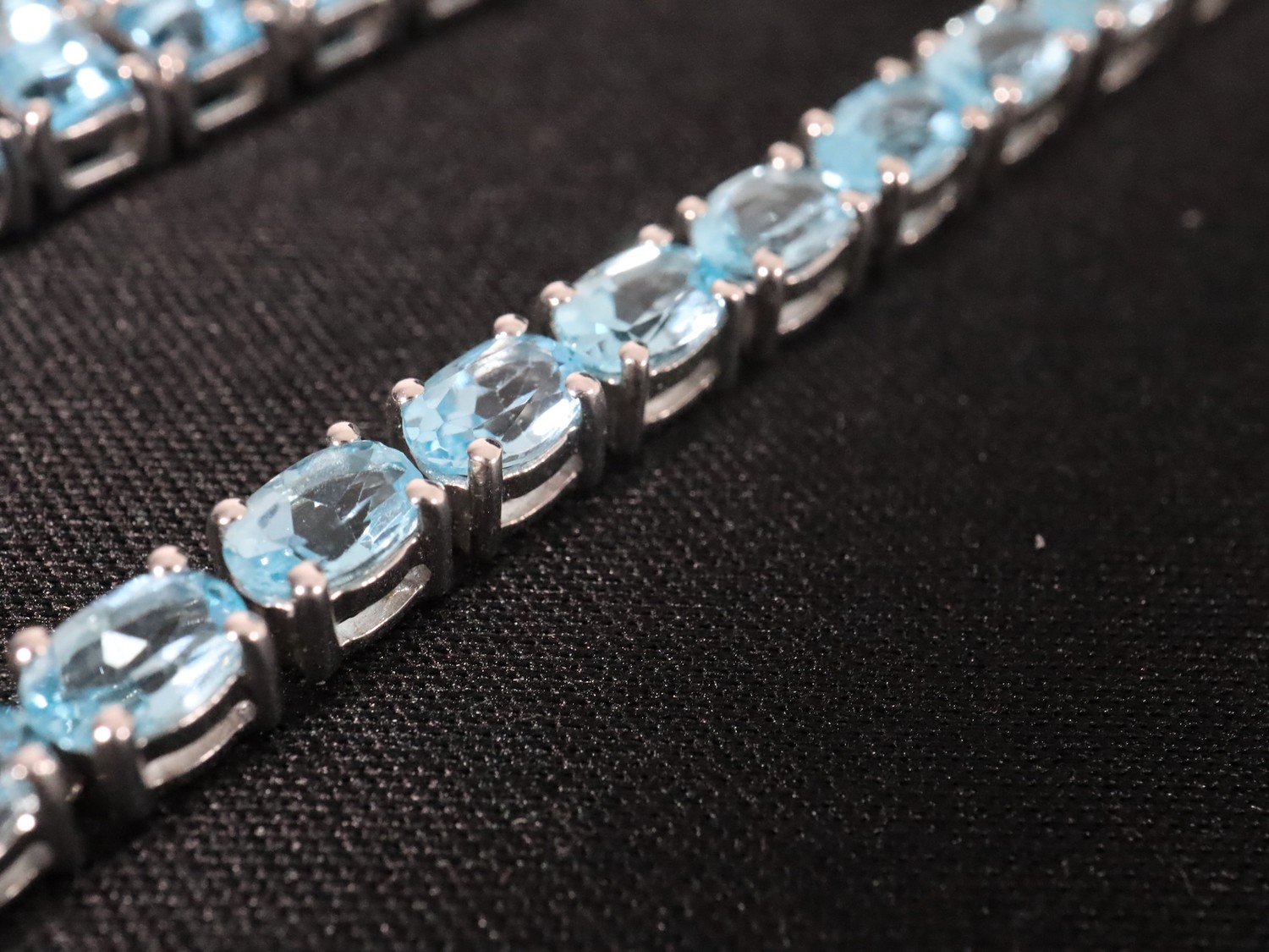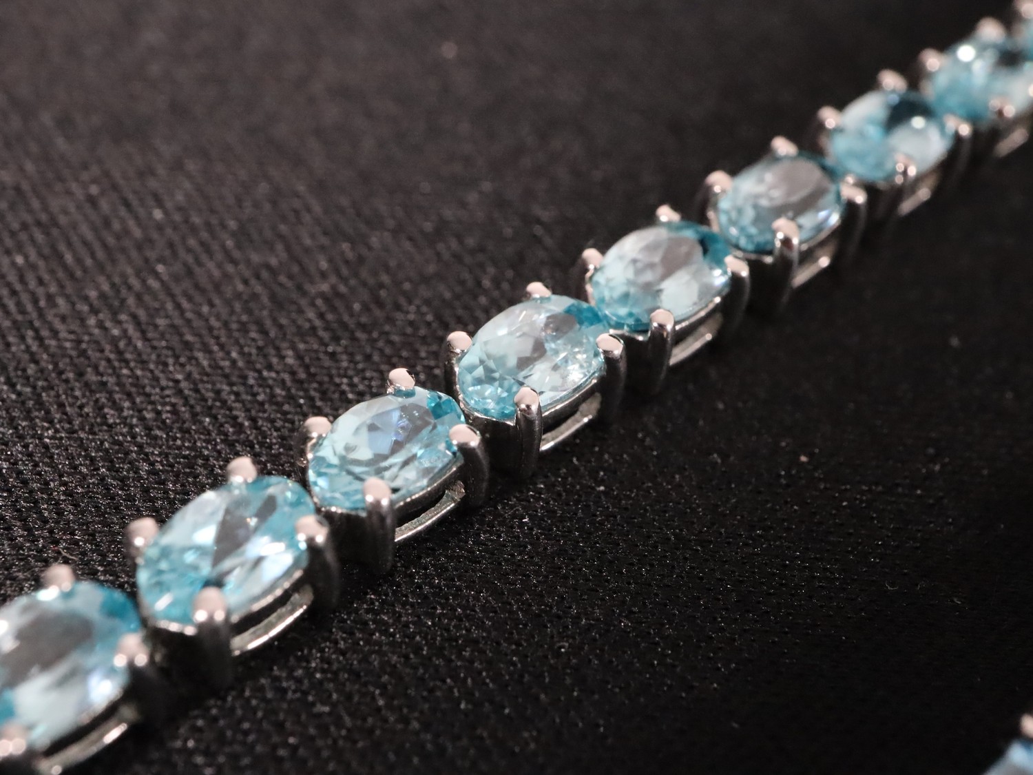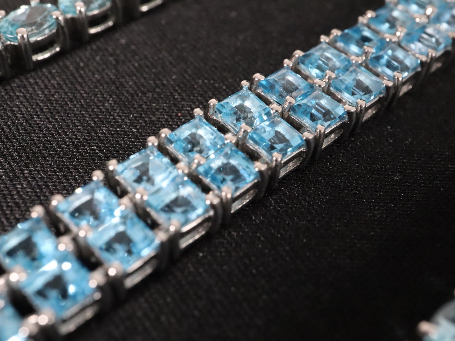 16.73ct Ratanakiri Blue Zircon Sterling Silver Bracelet, 2168ct Swiss Blue Topaz Sterling Silver Bracelet, 14.35ct Swiss Blue Topaz Sterling Bracelet - 8"