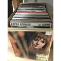 A box of LPs by various artists including Genesis, Roxy Music, Marianne Faithfull and others.