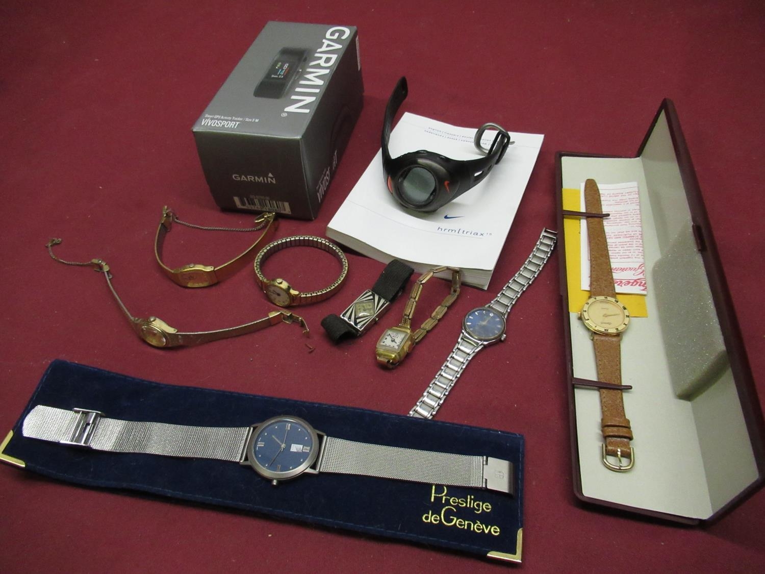 Collection of various fashion and other watches, including an Oris ladies watch, Sekonda ladies watch, Nike sports watch, Garmin Vivo sports smart watch, etc