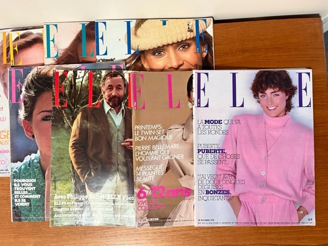 Eight 1970's and 1980's Vintage French Elle Magazines