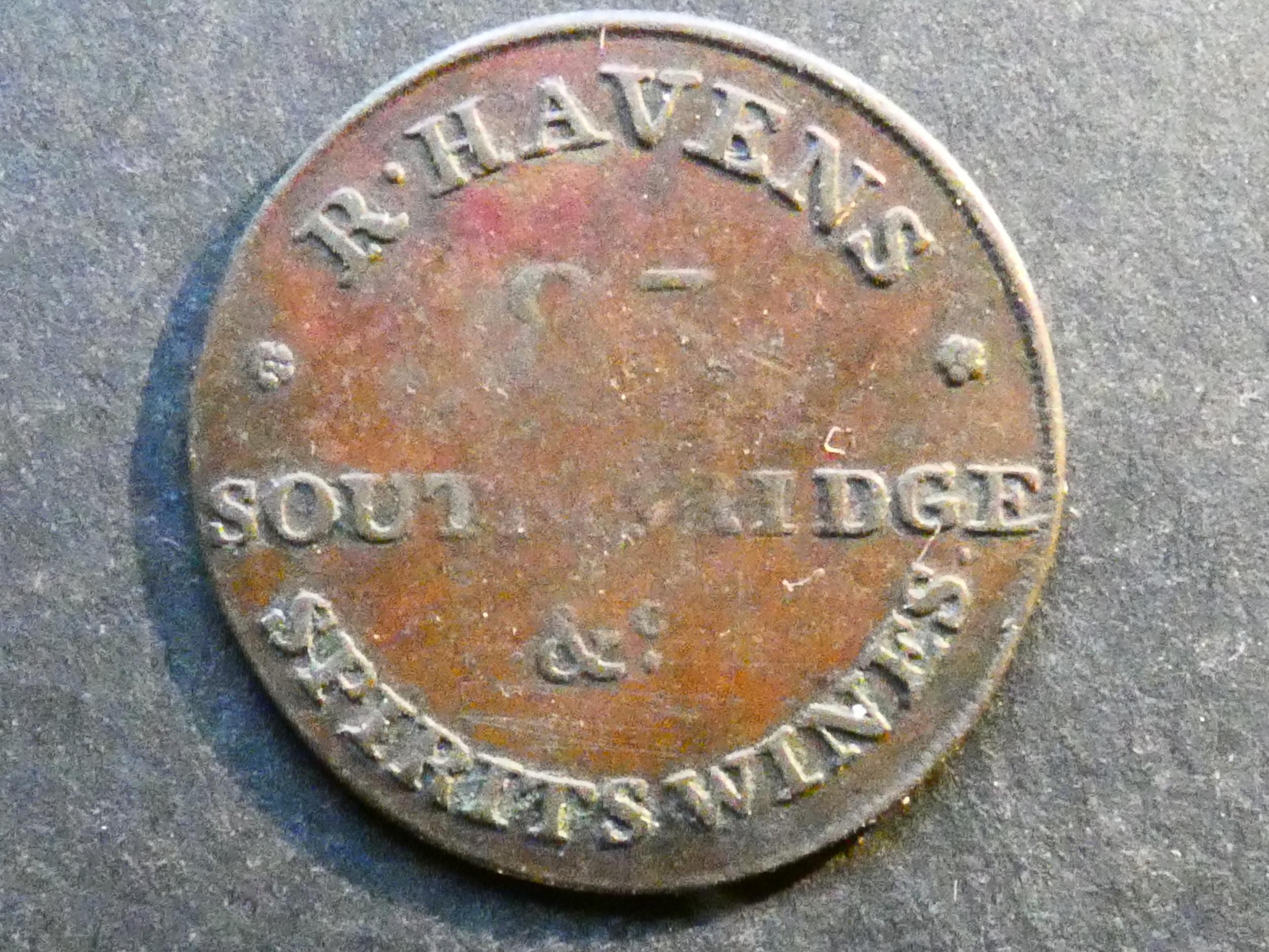 TOKENS - 18th CENTURY. Scotland, Lothian, Edinburgh, Farthing, obverse; R. HAVENS 83 SOUTHBRIDGE &c., SPIRIT WINES, reverse; LATE SHEPHARD'S TEA SHOP, D&H-87, F, weak centres.