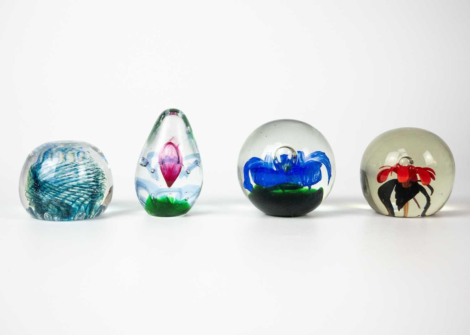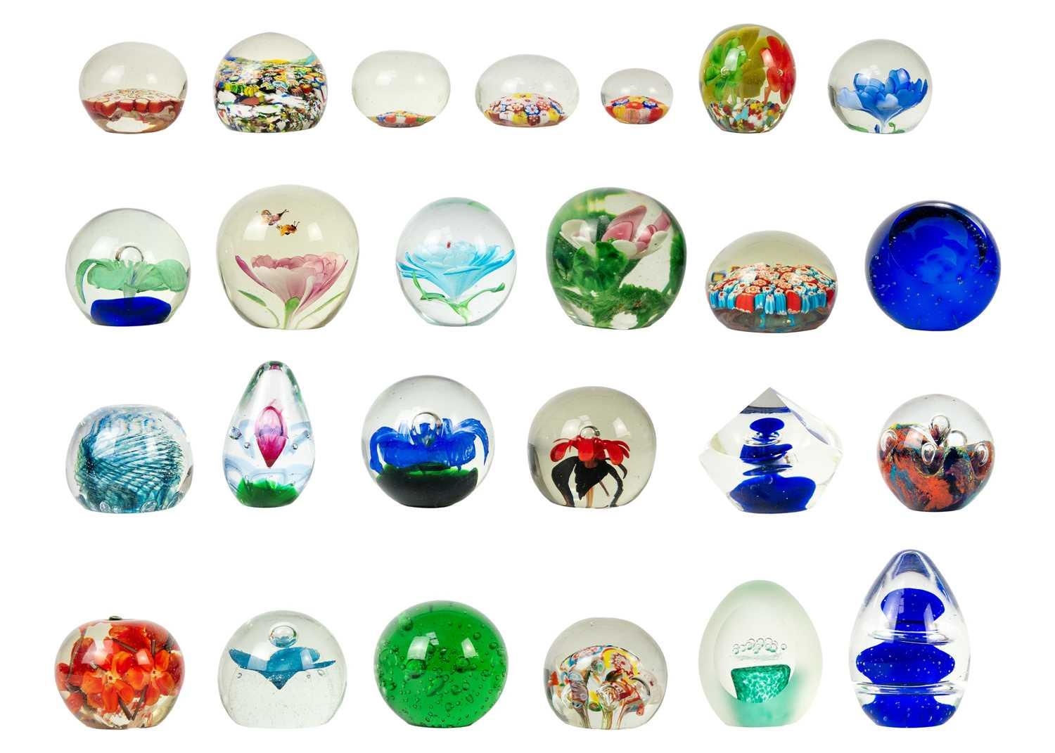 A collection of paper weights. twenty five in total.