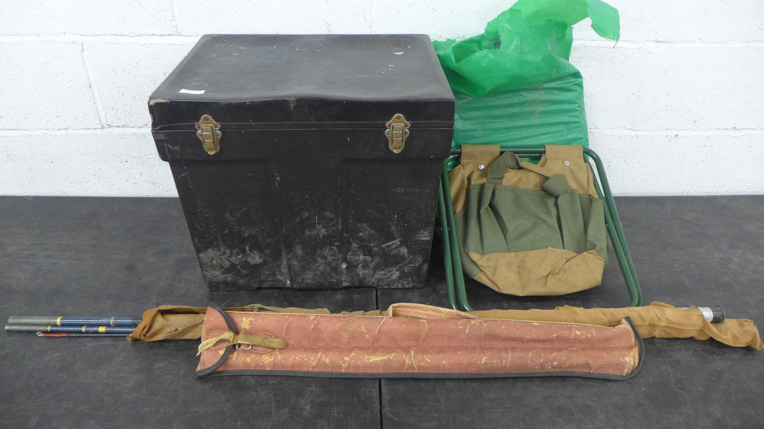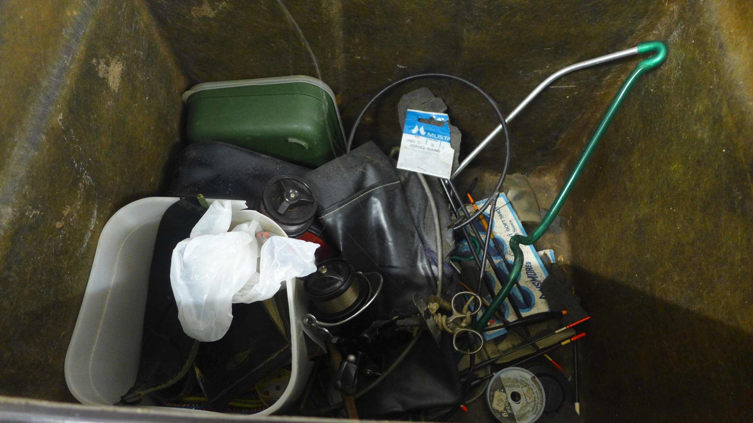 A quantity of assorted fishing items including rod, tackle bag, a reel, etc.
