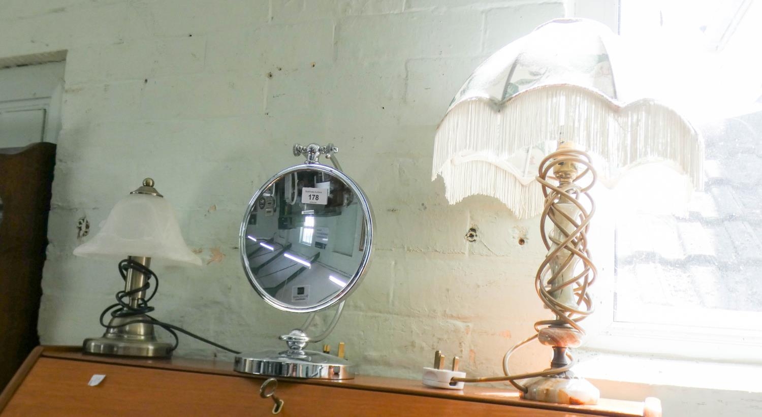 Two modern table lamps and a makeup mirror