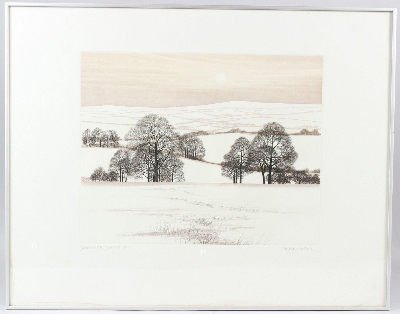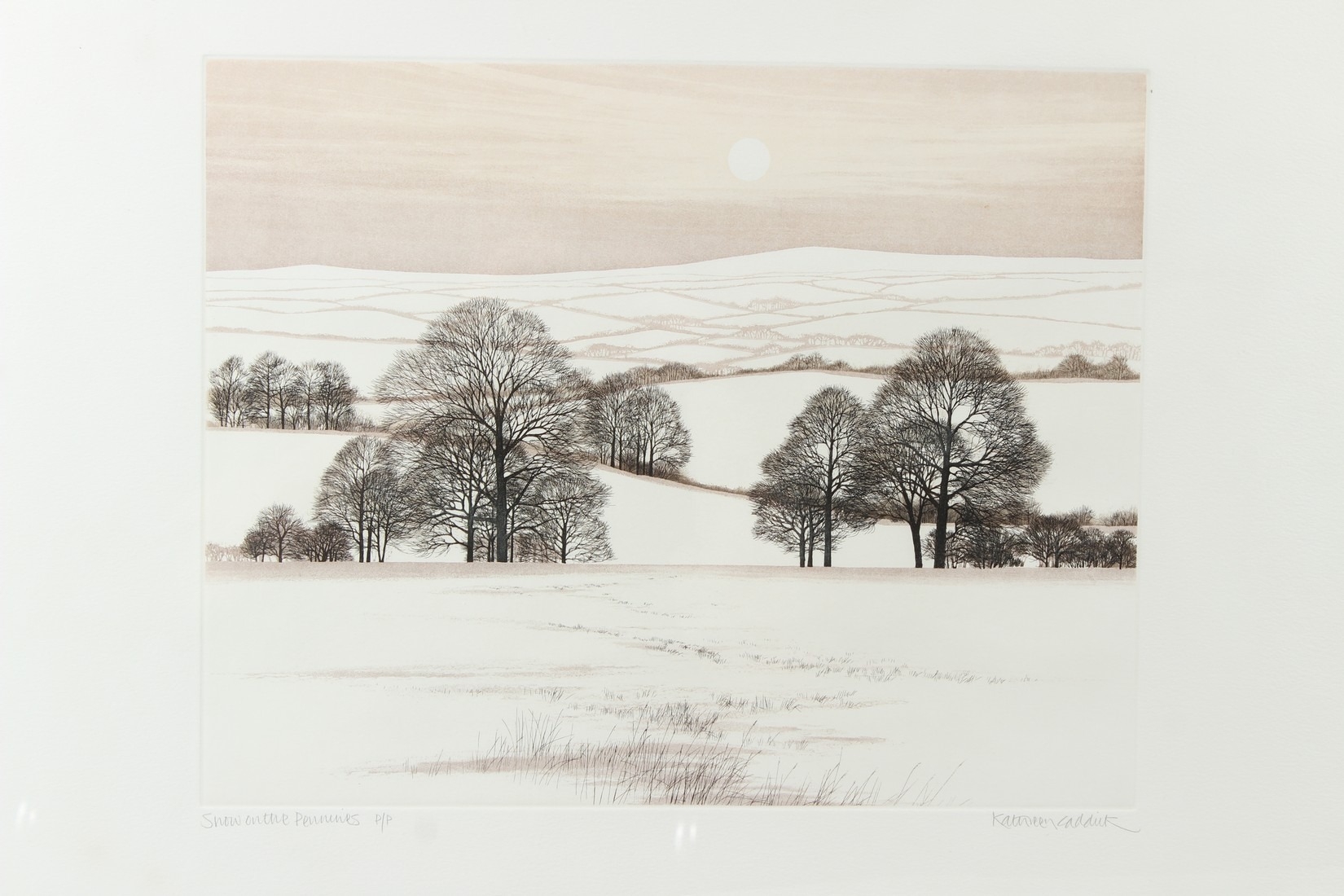 KATHLEEN CADDICK 'Snow on the Pennines' colour etching and aquatint signed, inscribed and annotated P/P in pencil 32 x 40cm (plate)