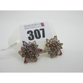 A Pair of Modern Large Cluster Earrings, multi claw set (7grams).