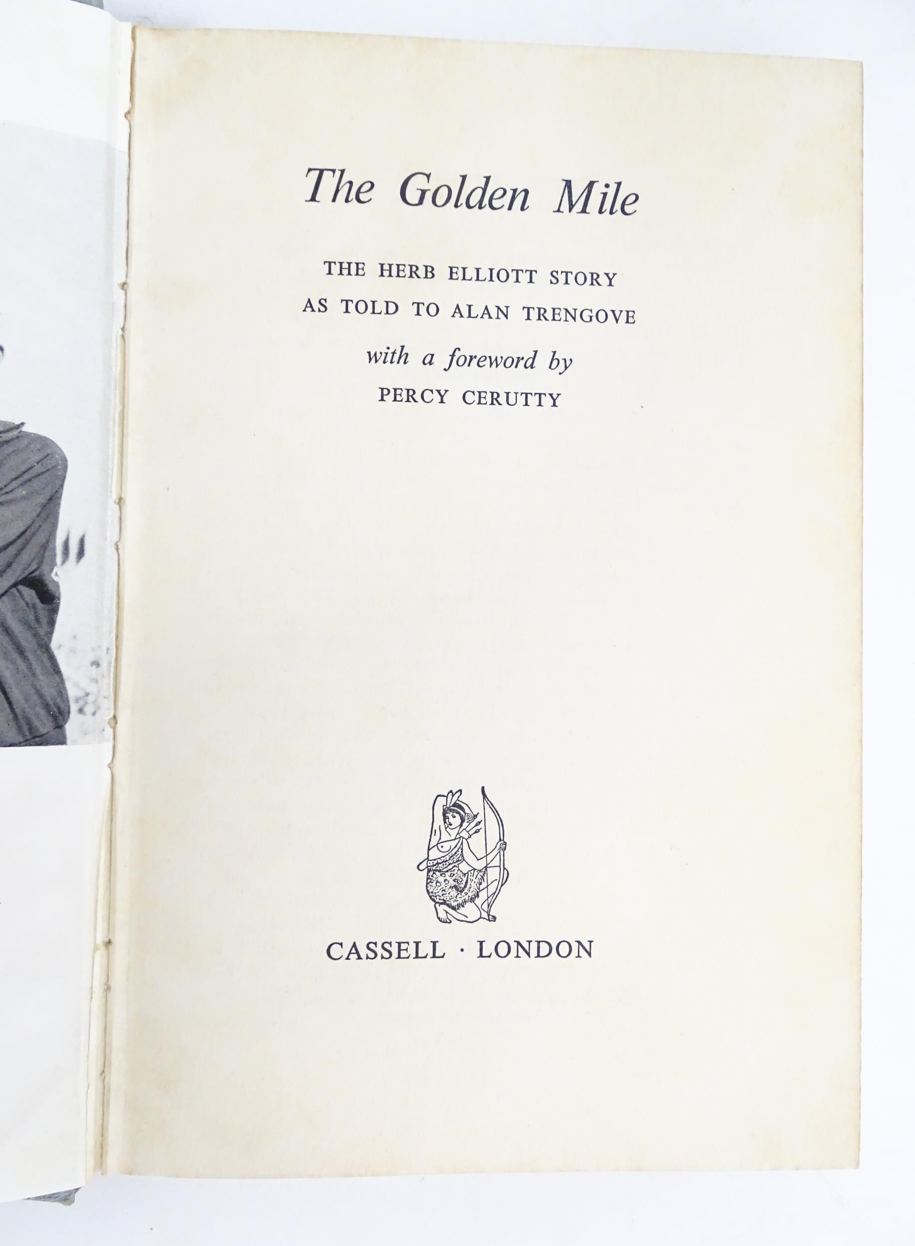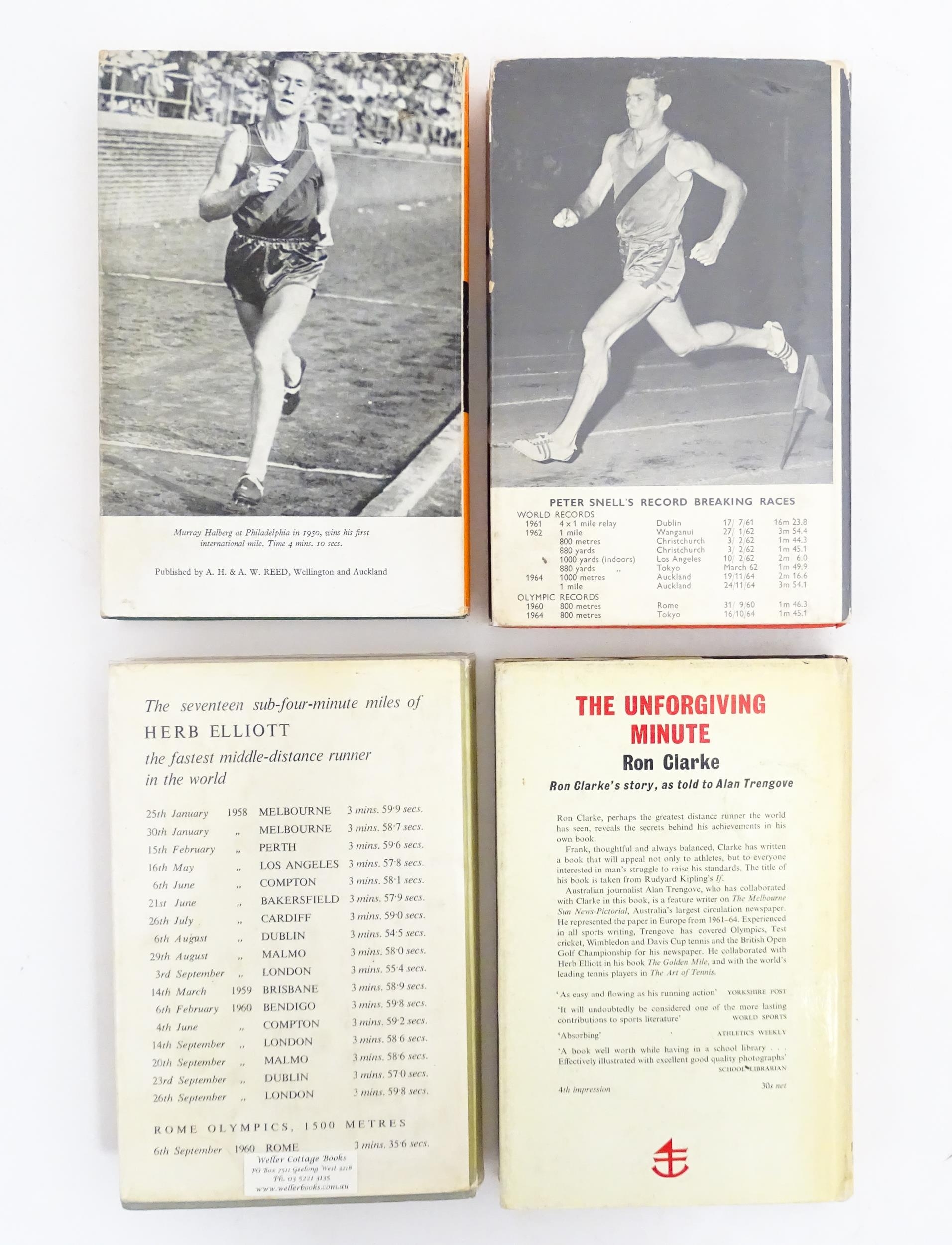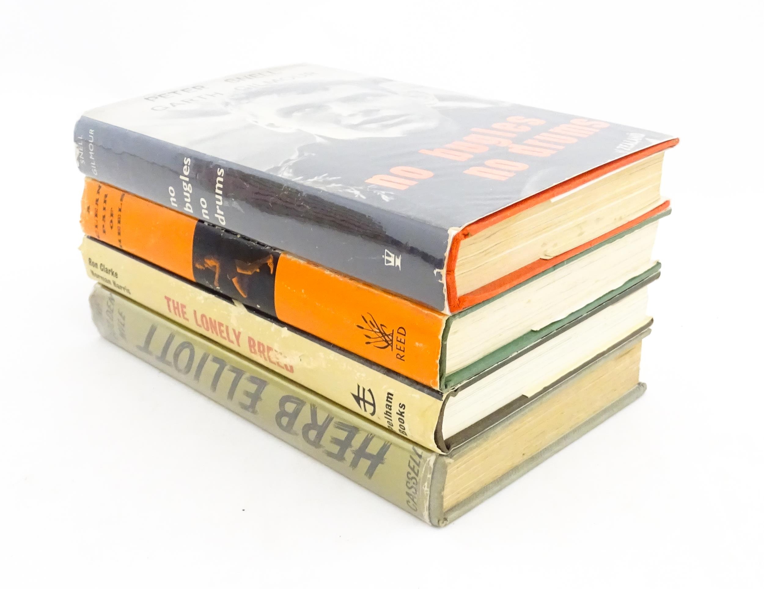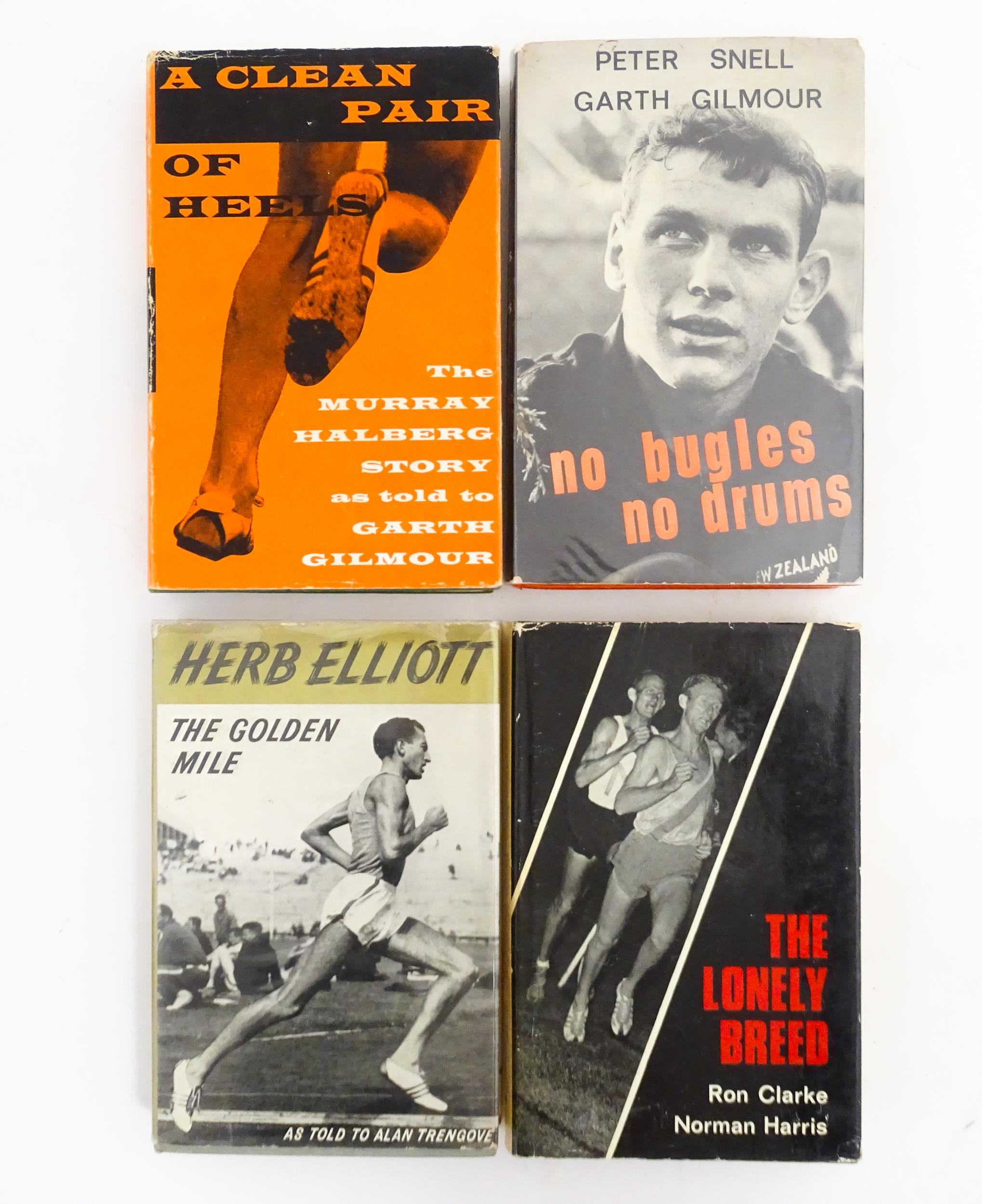 Books: Four books on the subject of runners / running comprising No Bugles No Drums by Peter Snell and Garth Gilmour, signed by Peter Snell, 1965; A Clean Pa of Heels: The Murray Halberg Story by Garth Gilmour, 1963; The Lonely Breed by Ron Clarke and Norman Harris, 1967, and The Golden Mile: The Herb Elliott Story by Alan Trengove, 1961 (4)