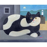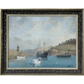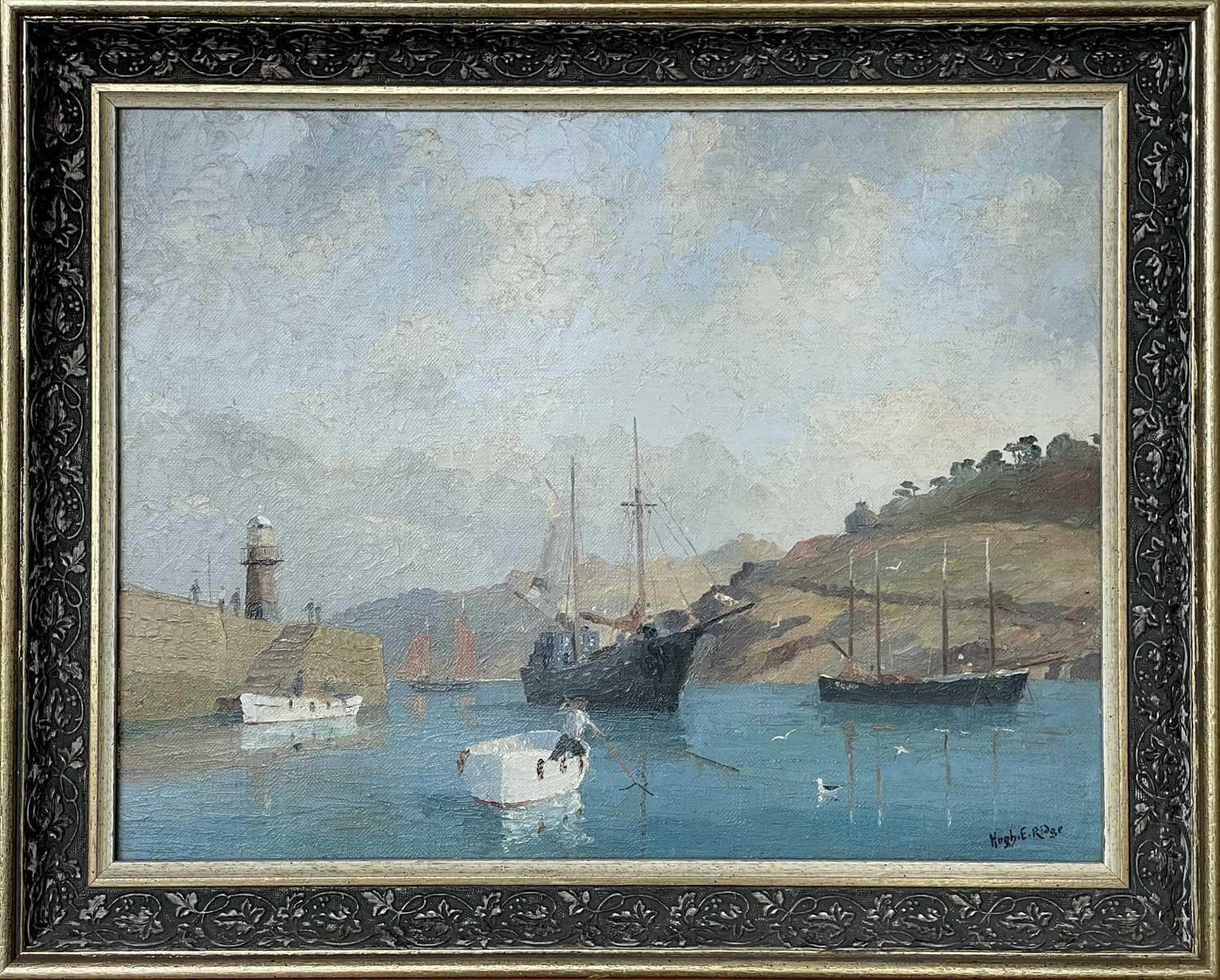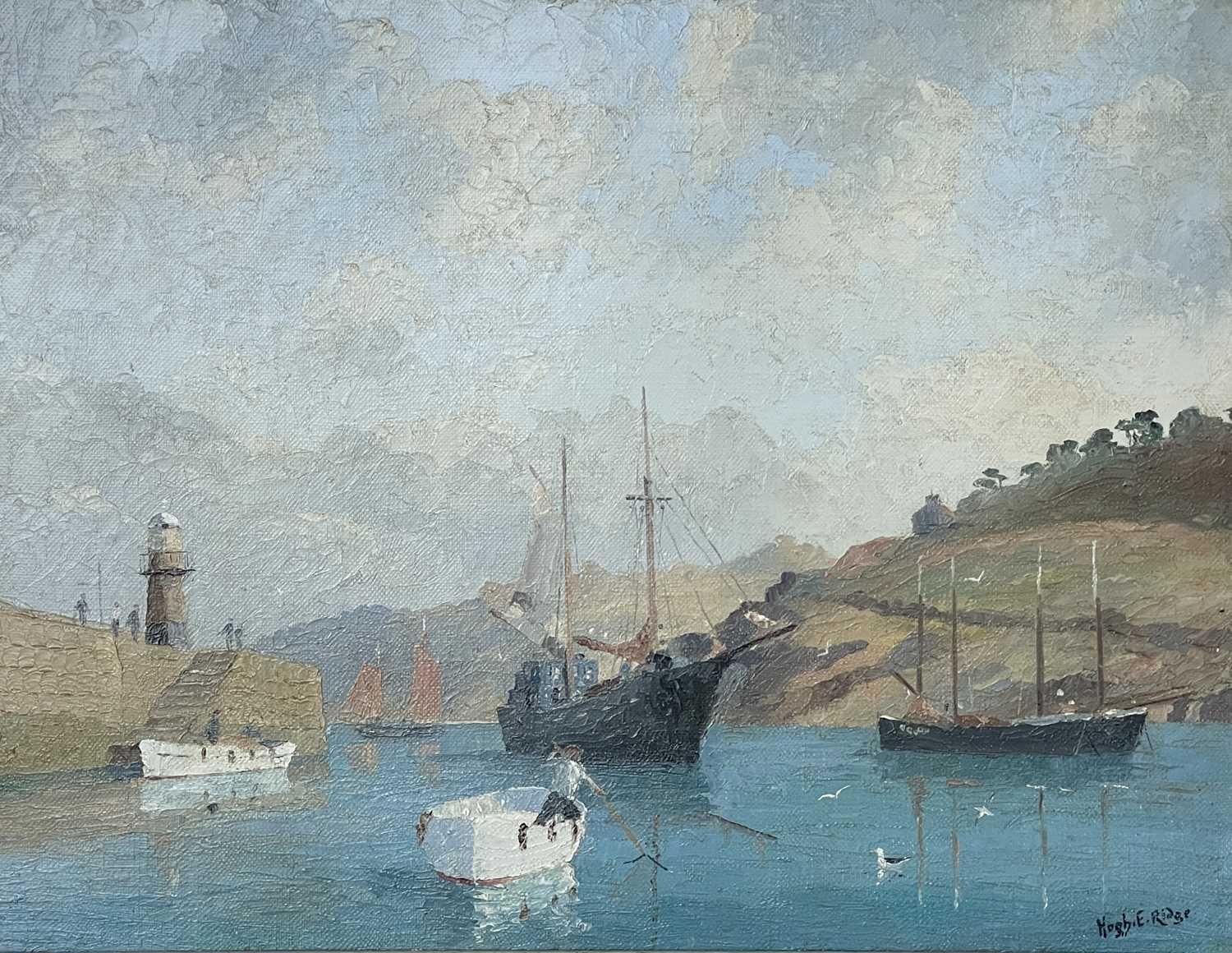 Hugh E RIDGE (1899-1976) St. Ives Harbour Oil on canvas, signed, 34 x 44cm. Frame size 44 x 54.5cm. This bright St Ives oil is ready to hang. A purist may wish to tighten the canvas and give it a light clean. There are no other issues and no restoration.
