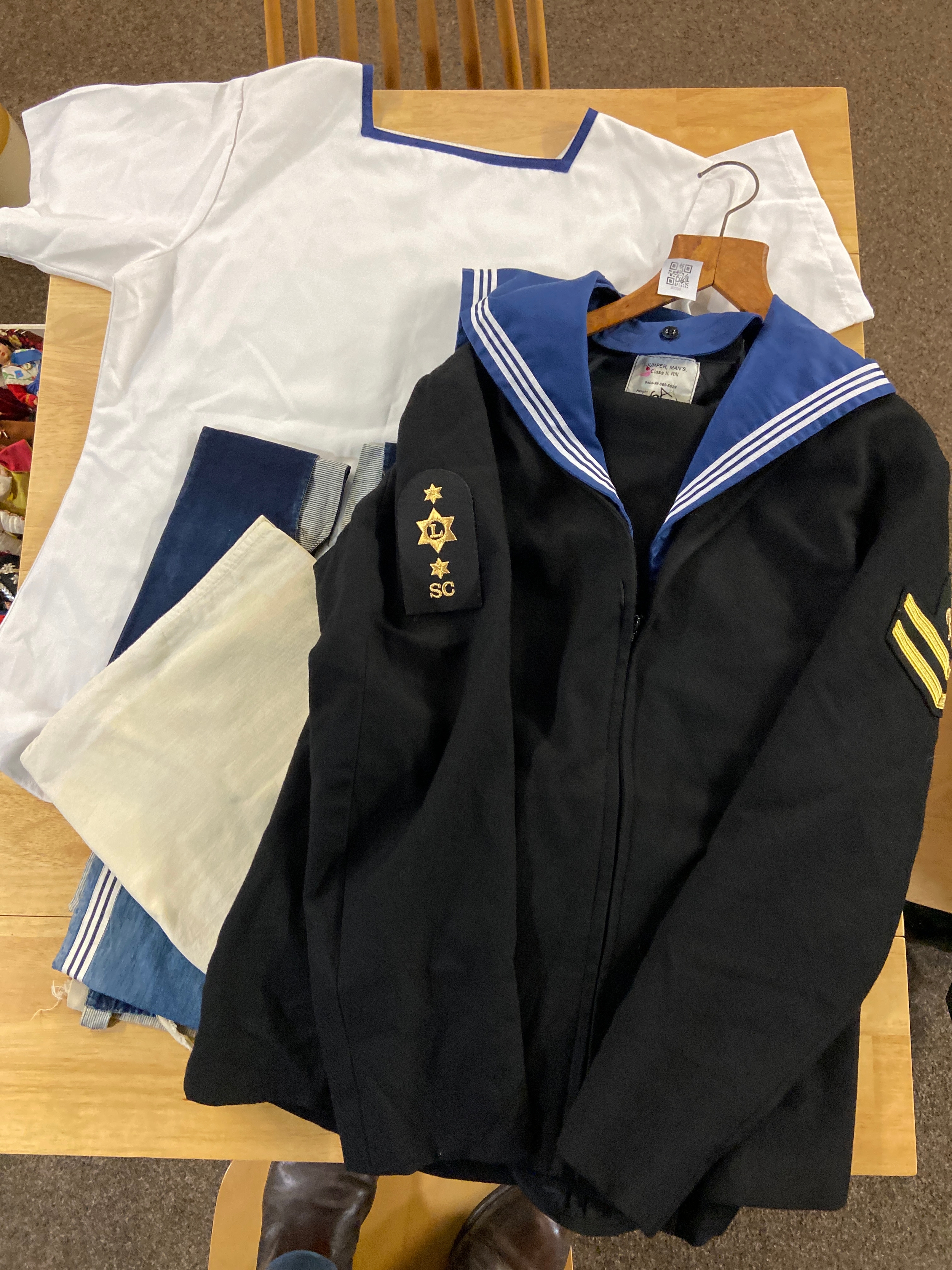 Selection of Navy uniform Inc, tunics, dress uniform and trousers, etc…