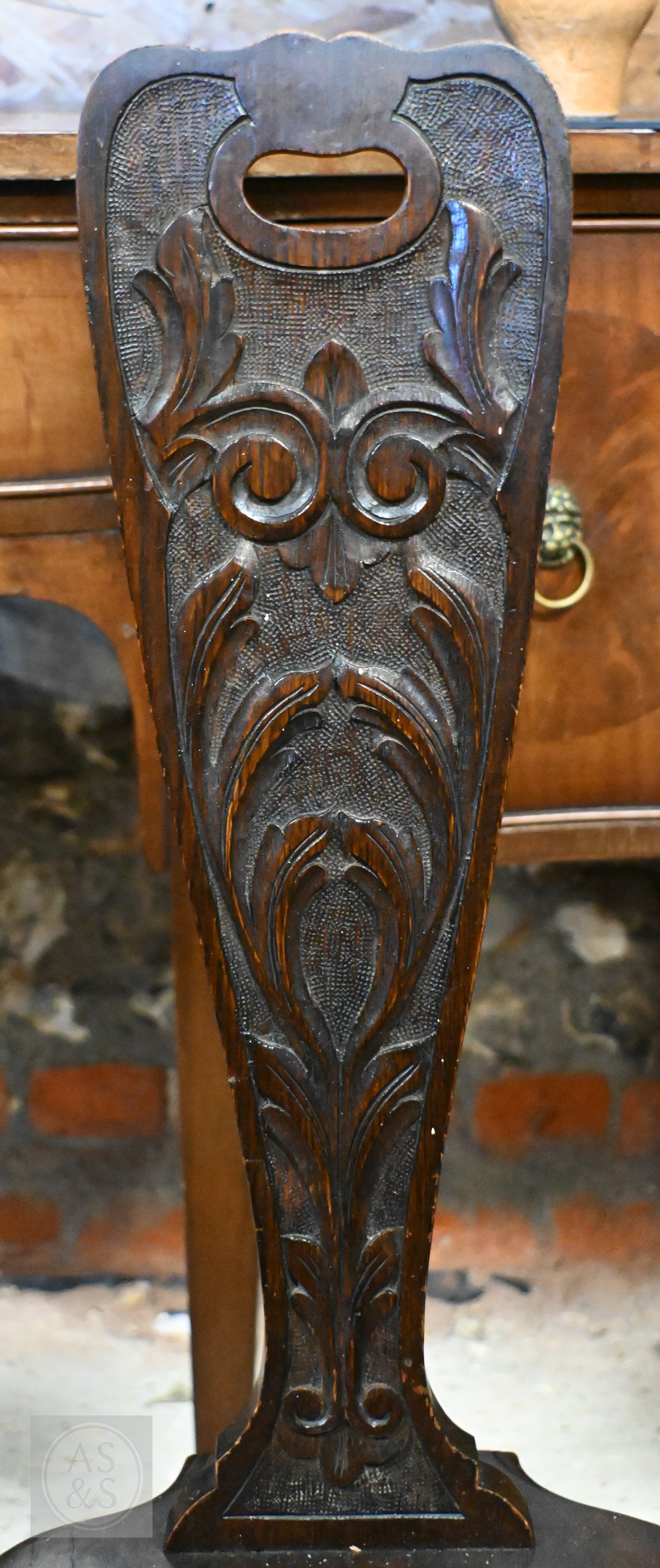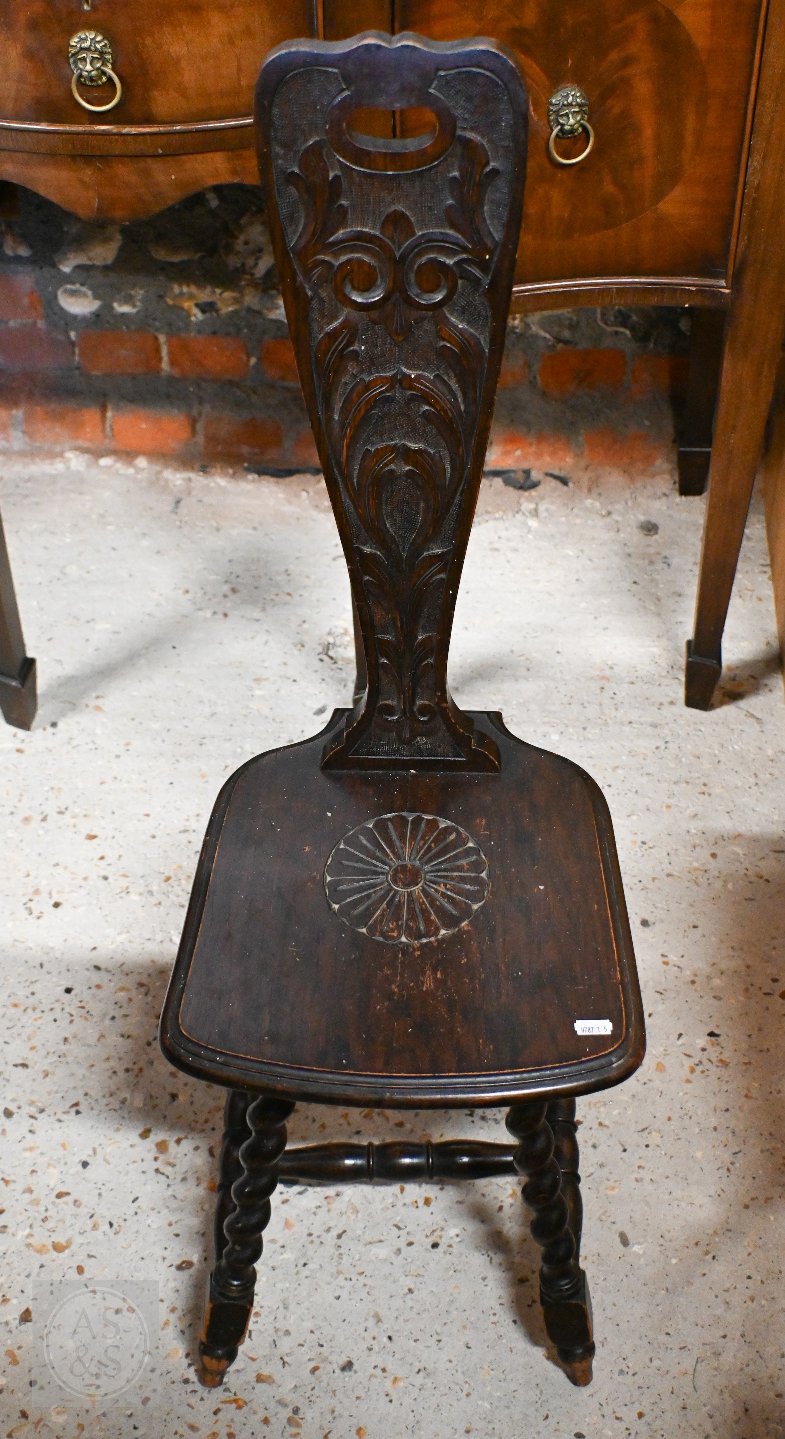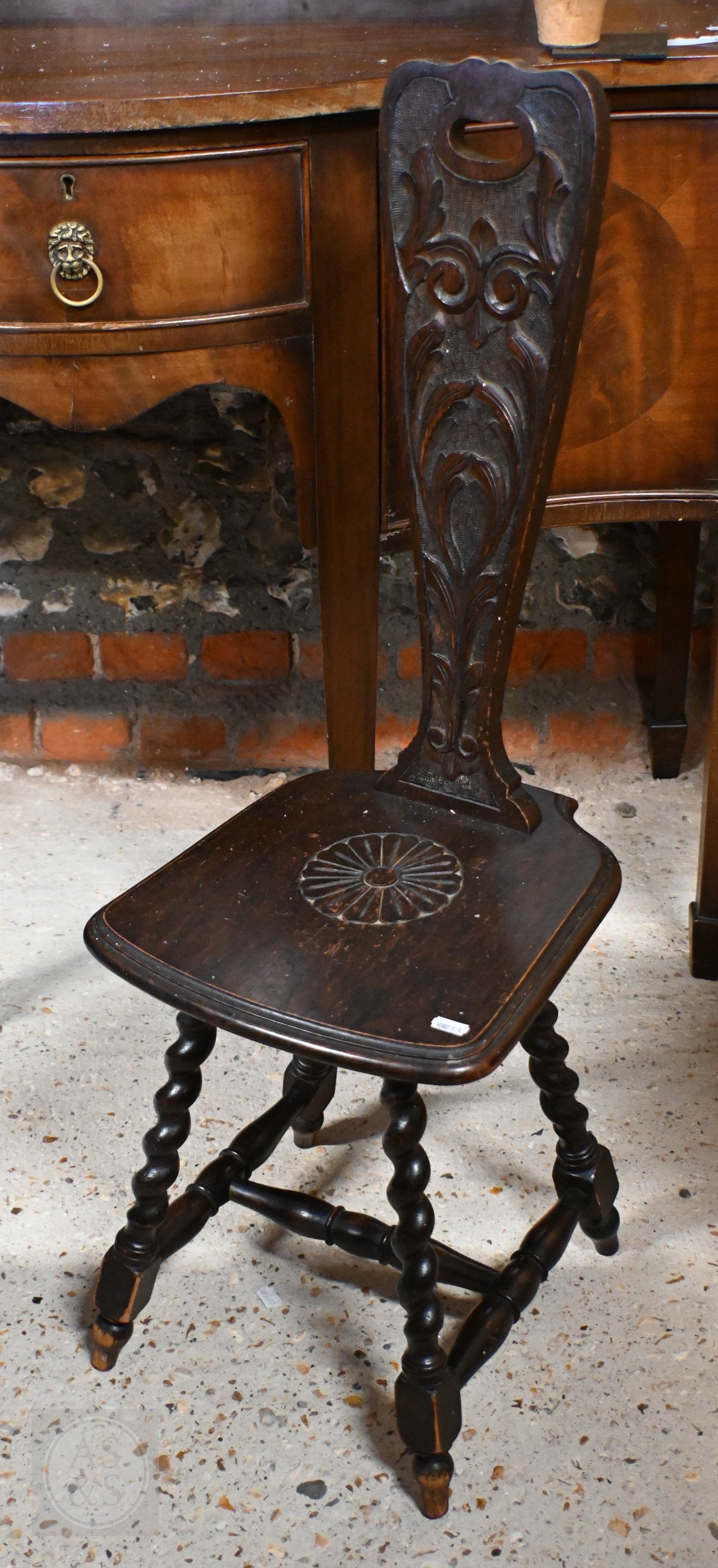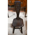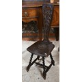 # A late 19th century carved oak Welsh spinning chairs on barleytwist legs