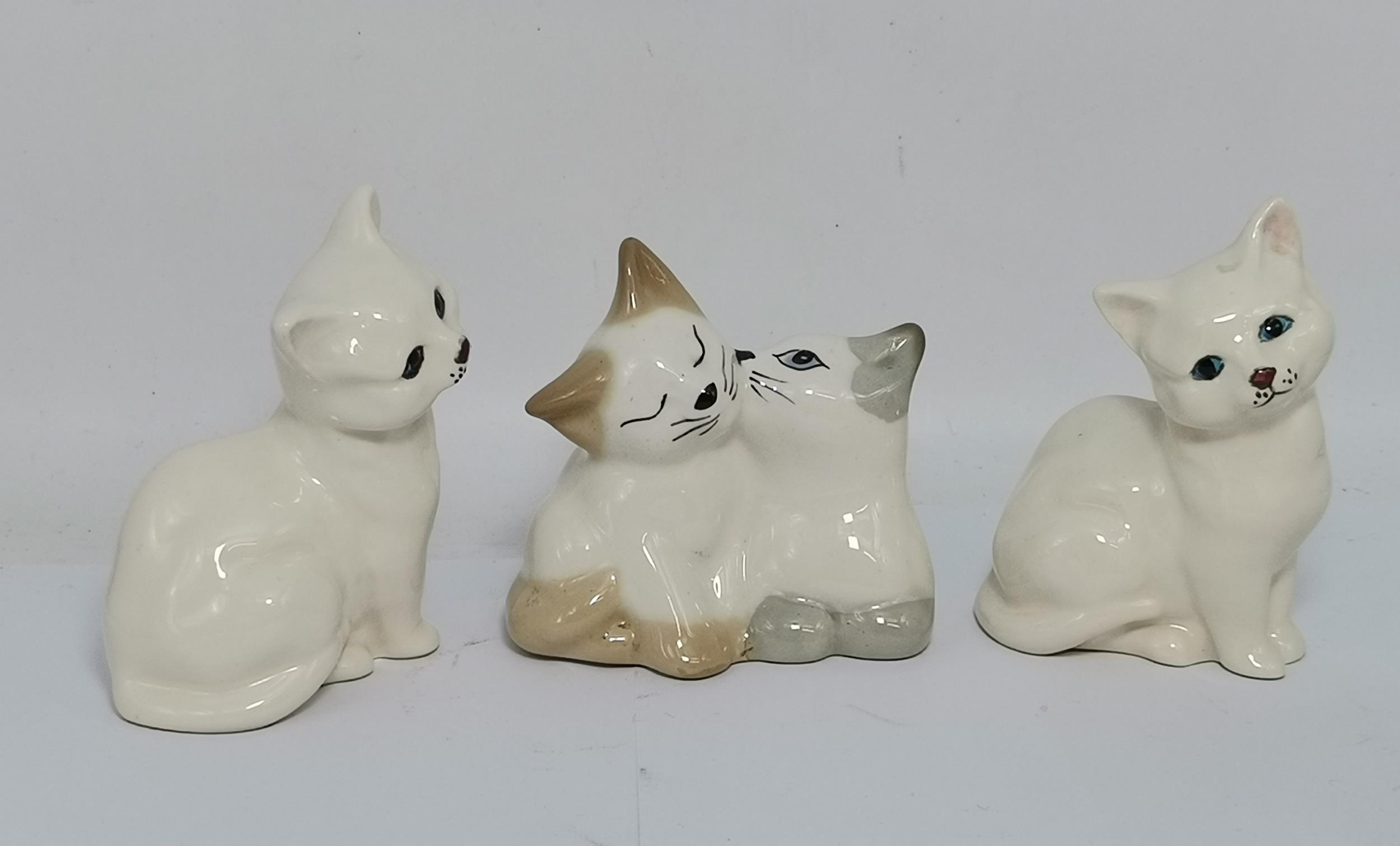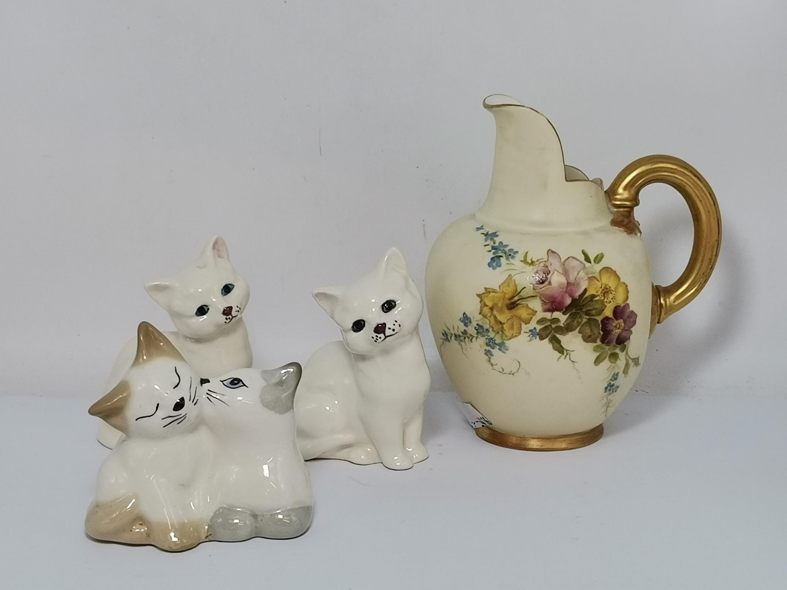 Royal Blush Ivory Floral Vase H13.5cm, Two Royal Doulton Cat figurines and pair of Szeiler cuddling cats