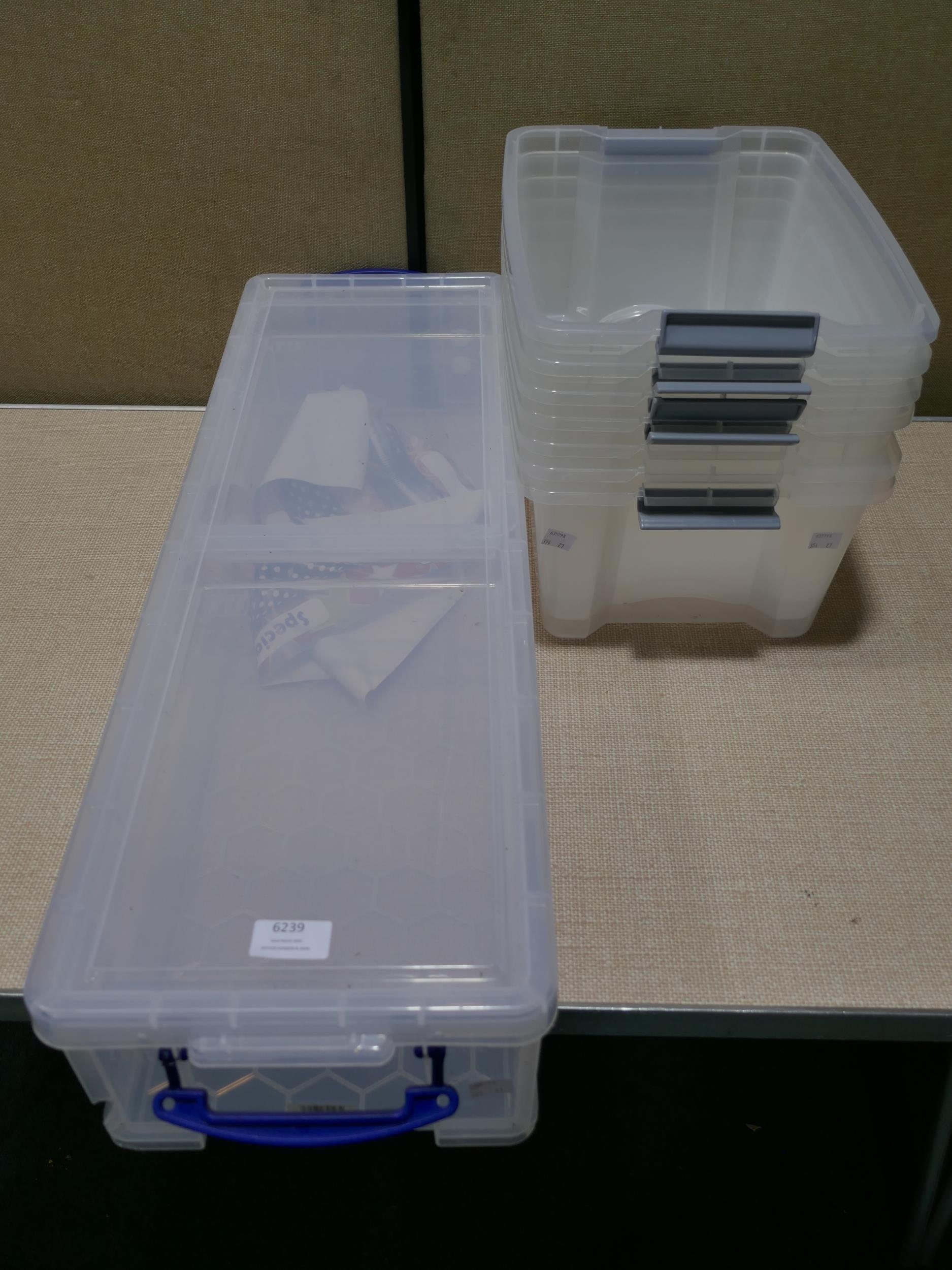 Six Iris 15l storage boxes and a Really useful wrapping/storage box (354-27) *This lot is subject to VAT